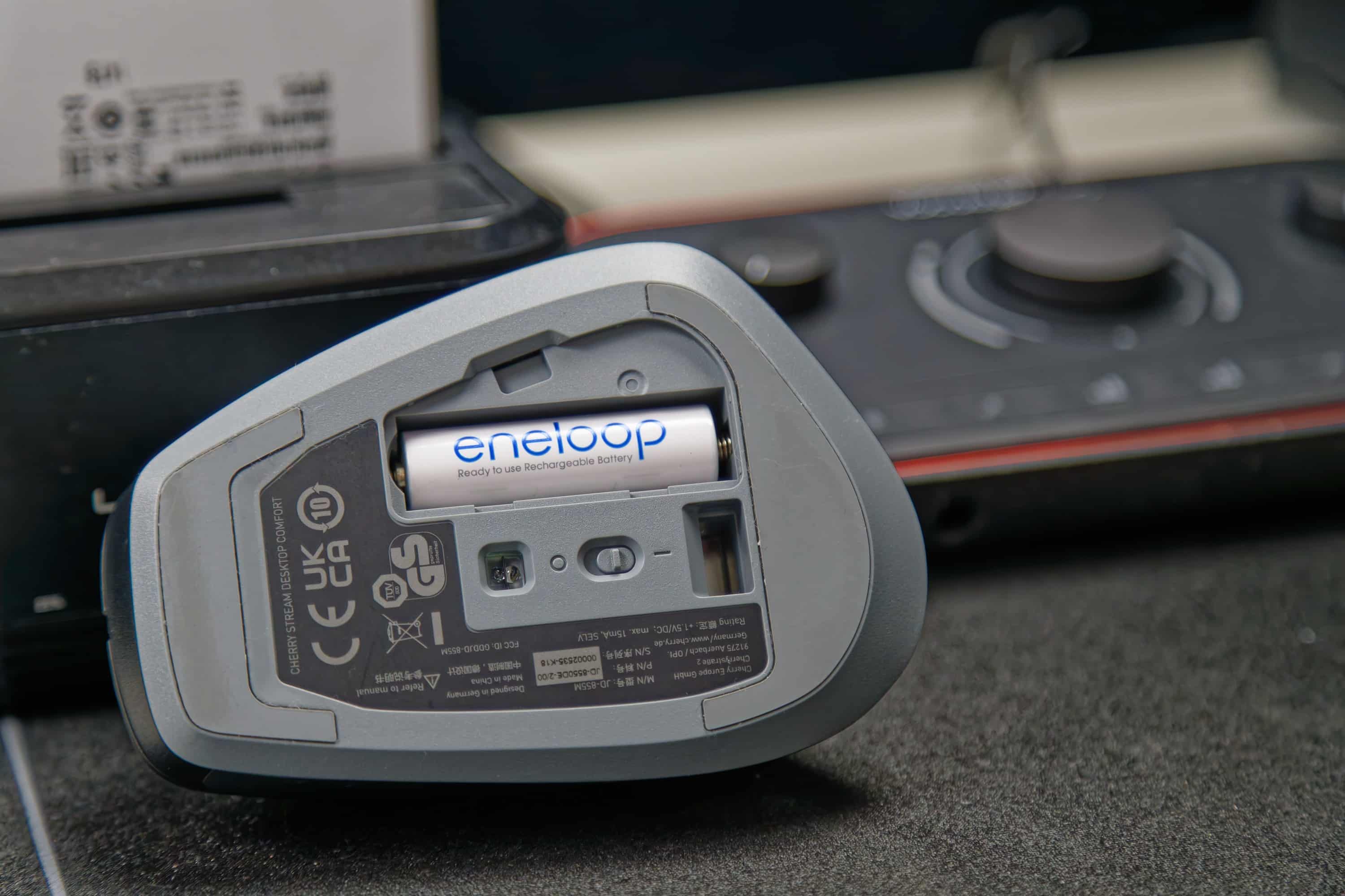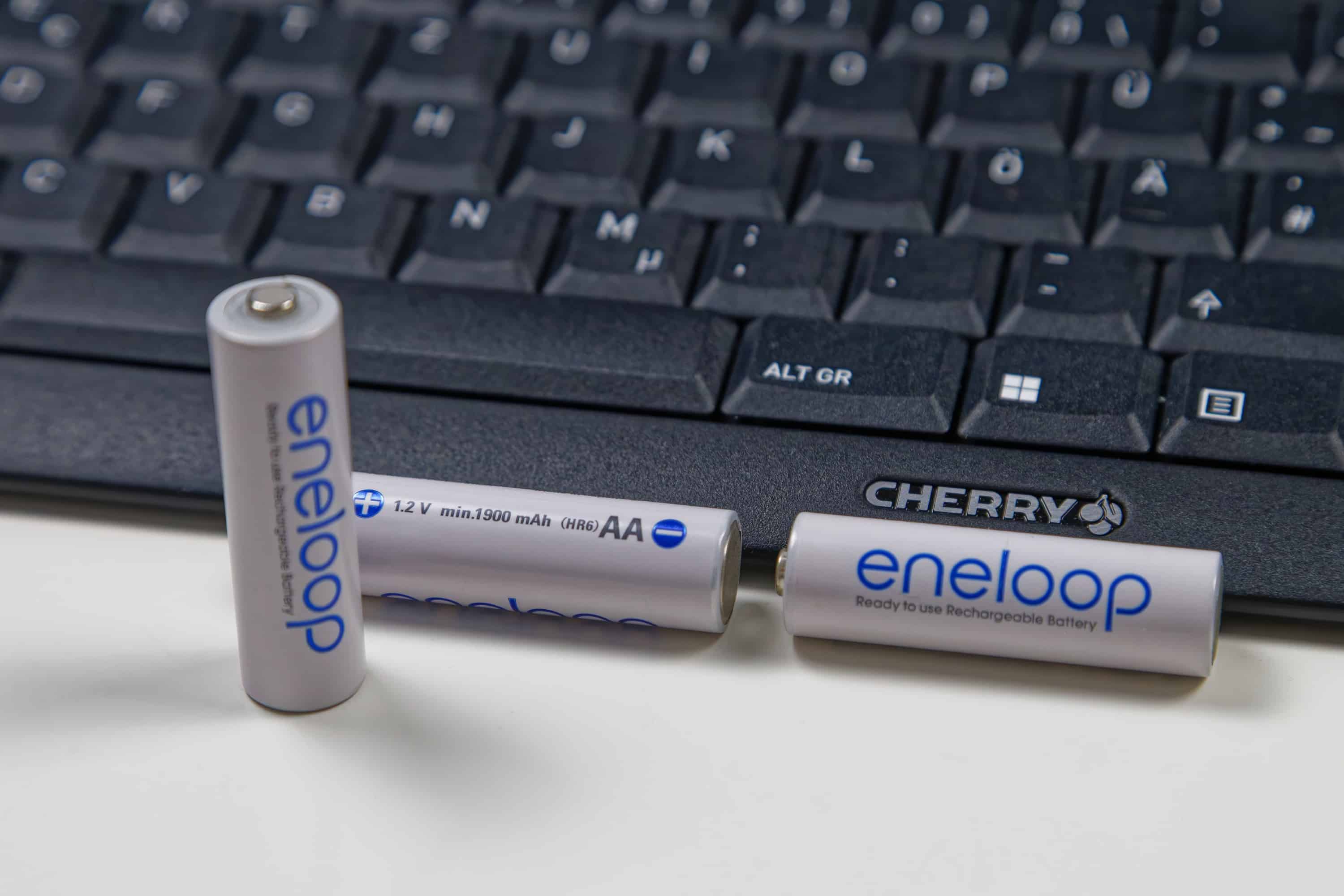 However, in terms of practical continuous use, the question arises as to whether operation also works with 1.2 V rechargeable batteries. This test is carried out with the popular eneloop rechargeable batteries, which have a very low self-discharge and are therefore also suitable for continuous operation without having to be constantly charged. In short: yes. After a short test with the supplied batteries, I used the eneloop rechargeable batteries in the Cherry Stream Desktop Comfort Set. I used them for the rest of the test and they worked without any problems. So you can also save costs and protect the environment in this way.