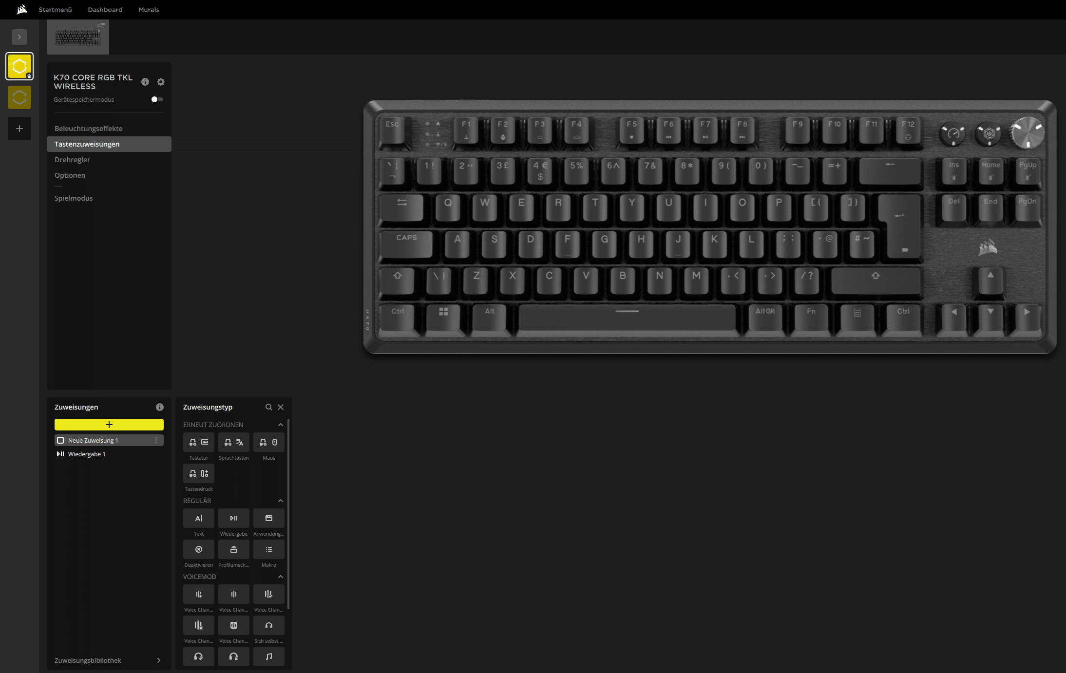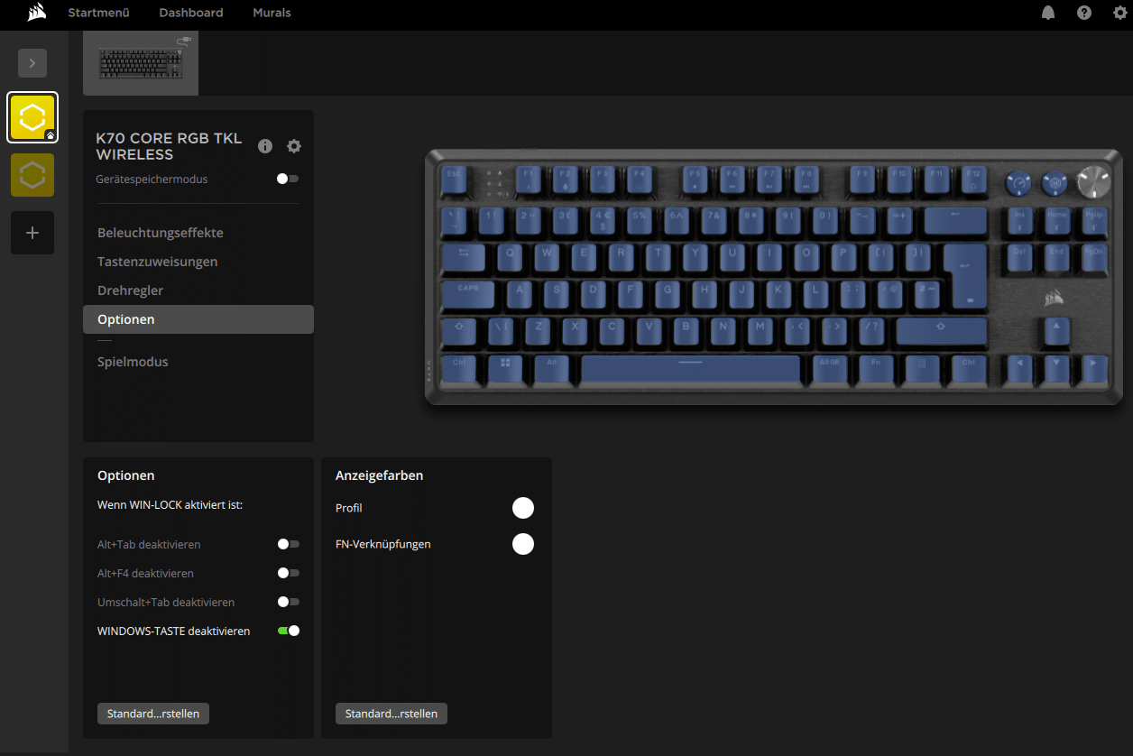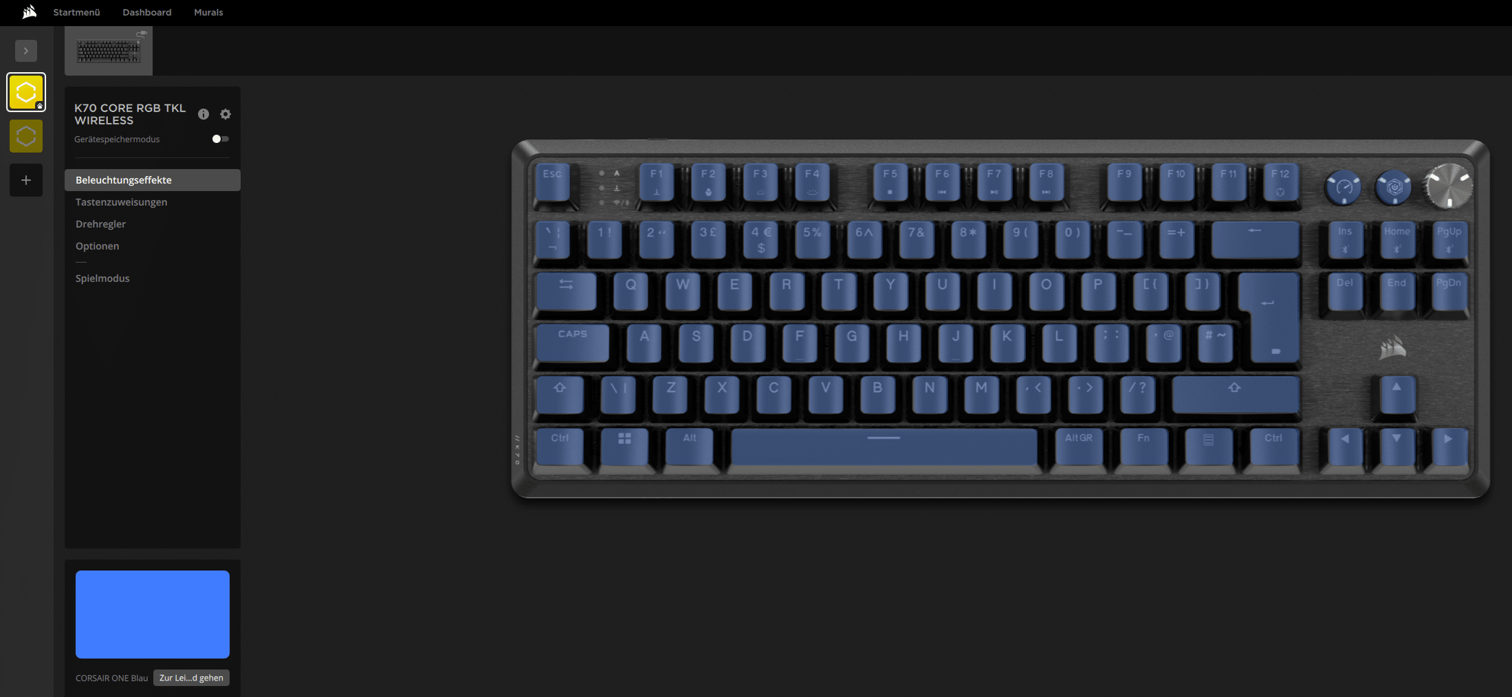 You can also save your desired settings directly on the keyboard. Up to 5 profiles can be saved directly and taken with you wherever you go. If you need more, you need iCUE. You can then create as many profiles as you like.