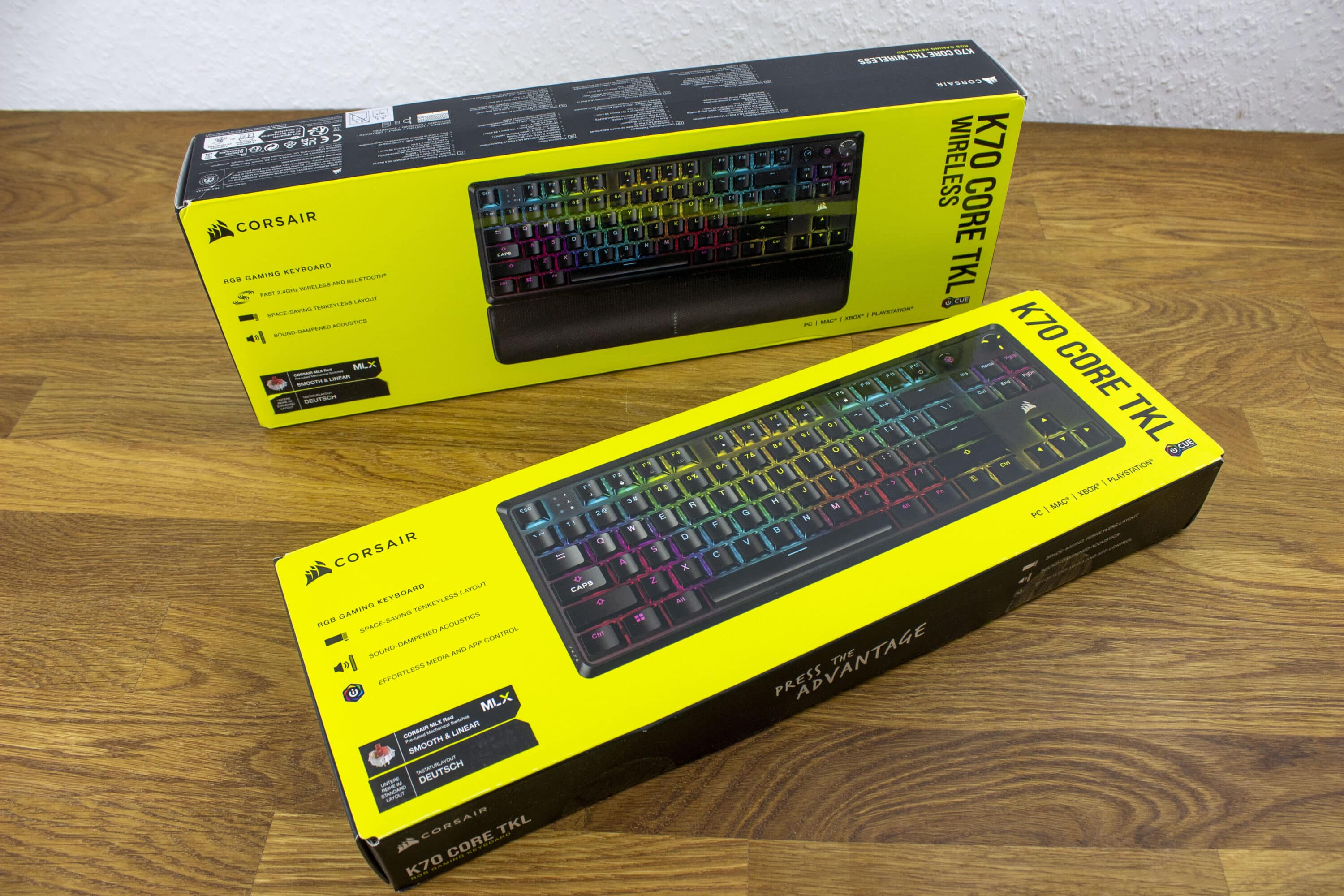 There are two models of the Corsair K70 Core TKL RGB. The wireless model can definitely be seen as an upgrade. In general, we can recommend the overall keyboard package. As a bonus, the K70 Core TKL Wireless RGB comes with a wireless keyboard and a palm rest. Due to the price difference, you should definitely consider investing a few euros more.