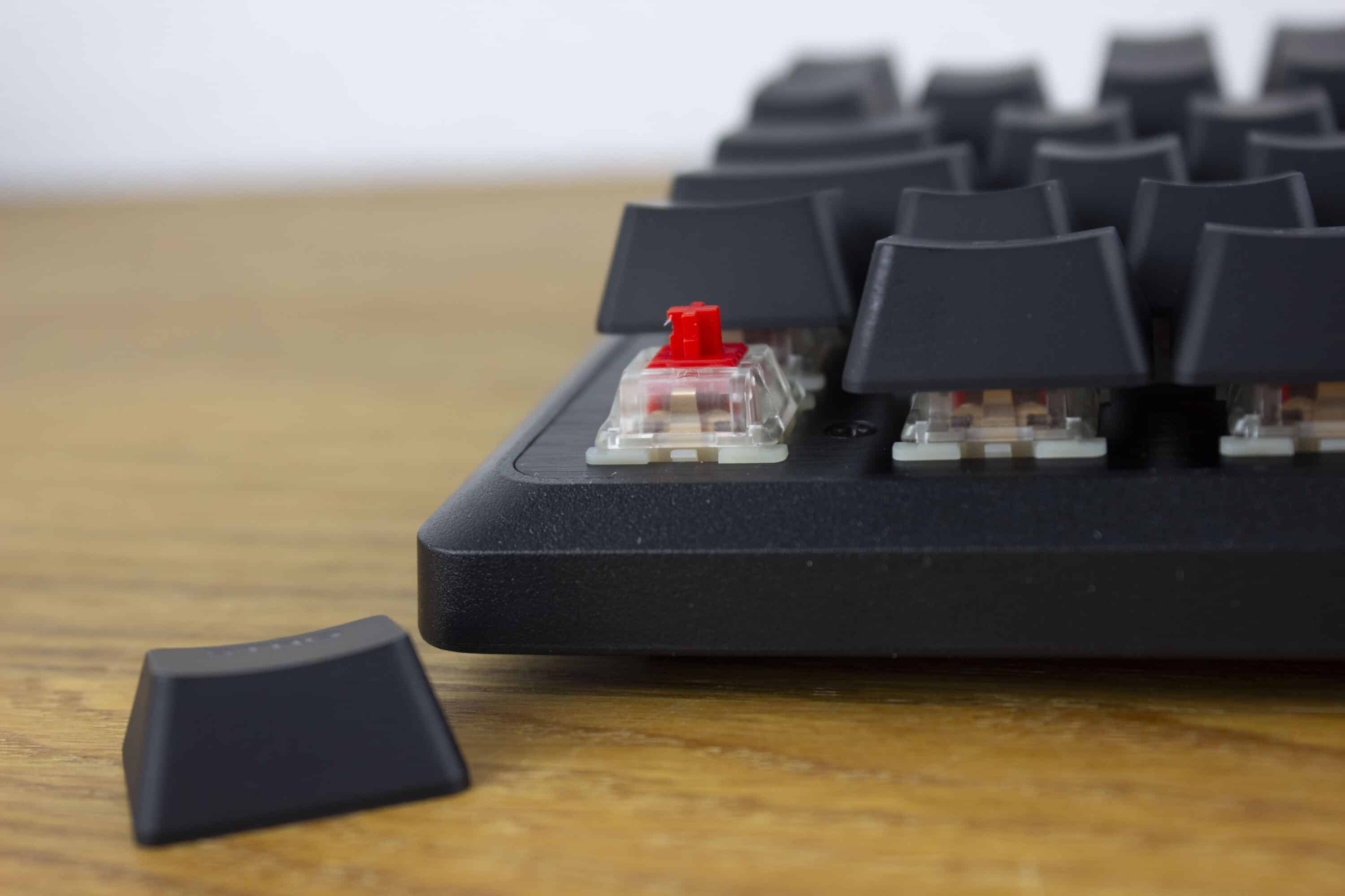 The MLX Red v2 keys used are lubricated, which should ensure a more pleasant typing experience. At the same time, the technology is placed between two sound-absorbing layers to dampen the key noise somewhat. The finish of the construction is an aluminum cover plate. If you want to clean the keyboard or replace the keycaps, they can simply be removed. No extra tools are required – for both models.