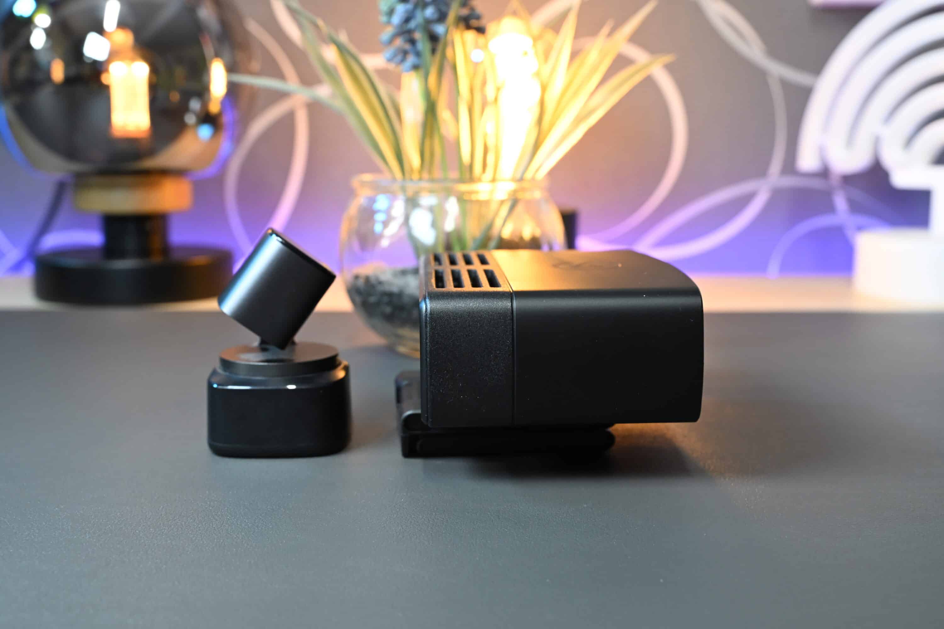 Accordingly, the Elgato Facecam Pro is comparatively bulky: The professional webcam is 38 mm high, 116 mm wide and 79 mm deep and – without the mount – weighs a whopping 240 grams. This makes it considerably wider than its cheaper 1080p sister, the Elgato Facecam MK.2 (our test), for example, and many times larger than the OBSBOT Tiny 2 (our test) – the best 4K webcam on the market for us to date. The direct comparison screams “David versus Goliath”, although on paper there is not much separating the two cams.