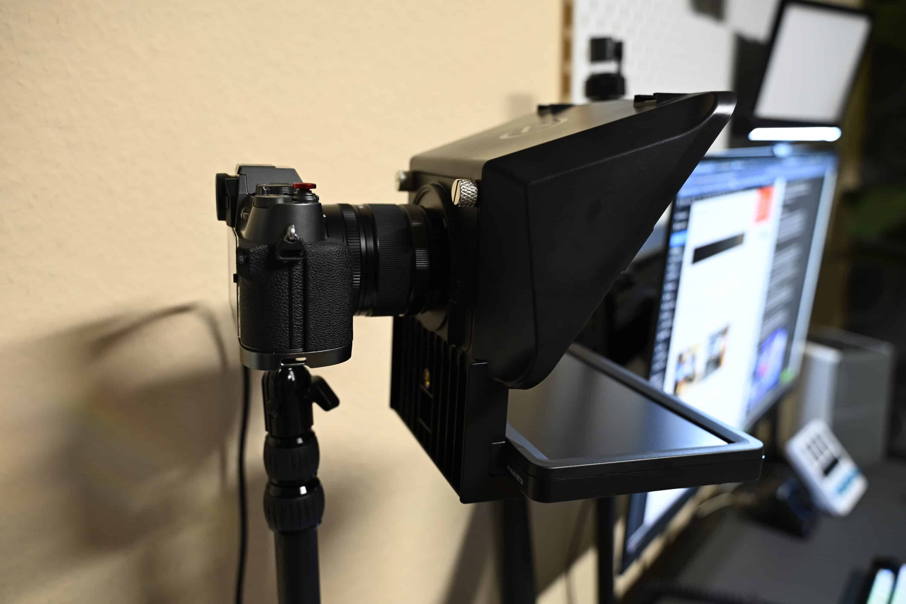 The only problem when using it with a system camera is that the prompter sits quite loosely on the lens and can therefore slip quickly. However, this is not a problem if you pay a little attention.
