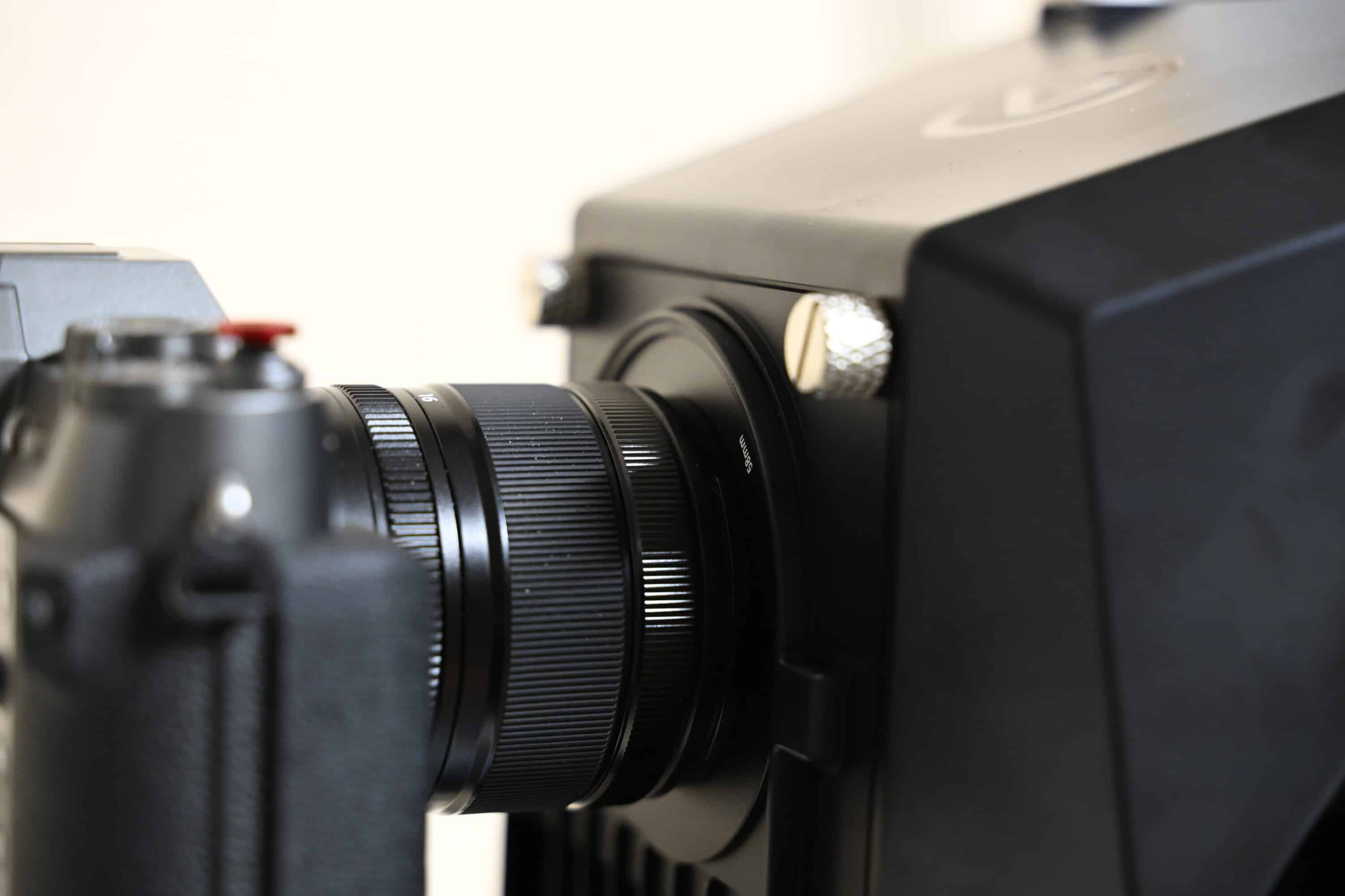 Zoom lenses can also be used without any problems. For example, I tested the prompter with the Fujifilm XT50 APS-C camera with a 16-50 mm lens, which worked perfectly.