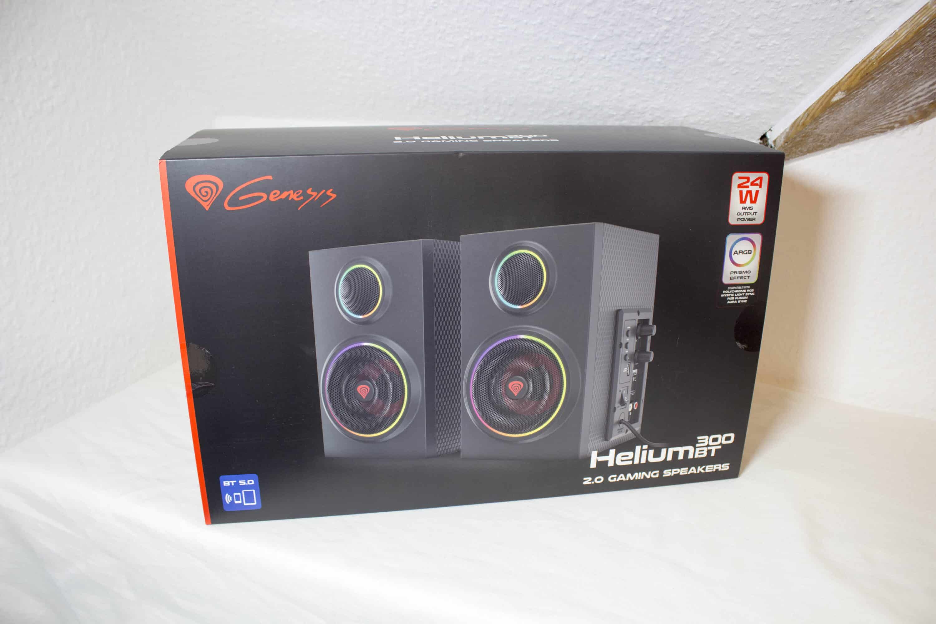 The Genesis Helium 300BT ARGB speakers are delivered in a nicely printed cardboard box. Here Genesis already wants to make a good impression and it works. All the necessary information can be found there, just like the product. The box is very sturdy and the interior is neatly padded.