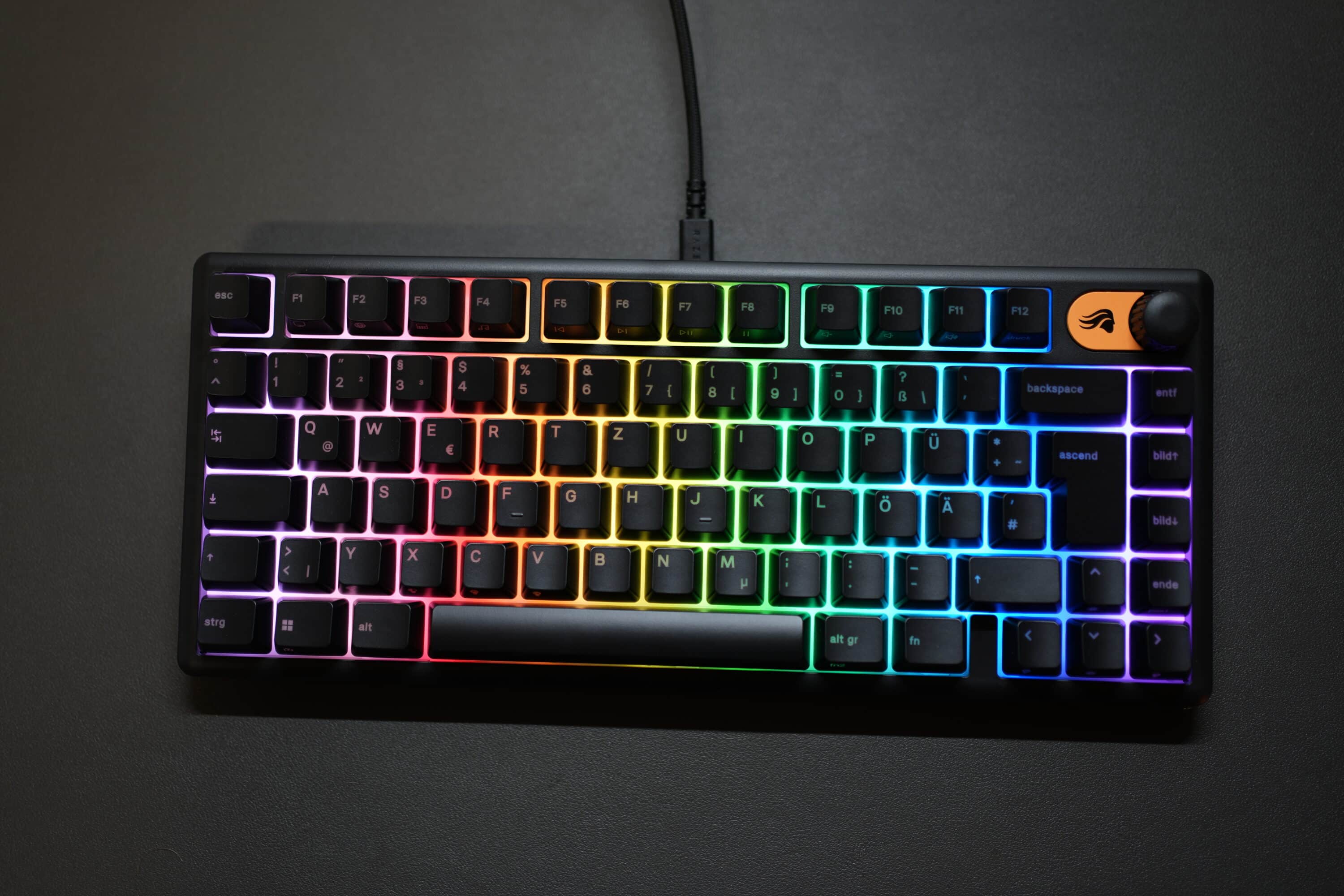 One of the unique selling points of the Glorious GMBK is of course the interchangeable keycaps. Hardly any other keyboard in this price range offers this option, especially as the GMKB is compatible with almost all common keycaps thanks to MX Stemps.