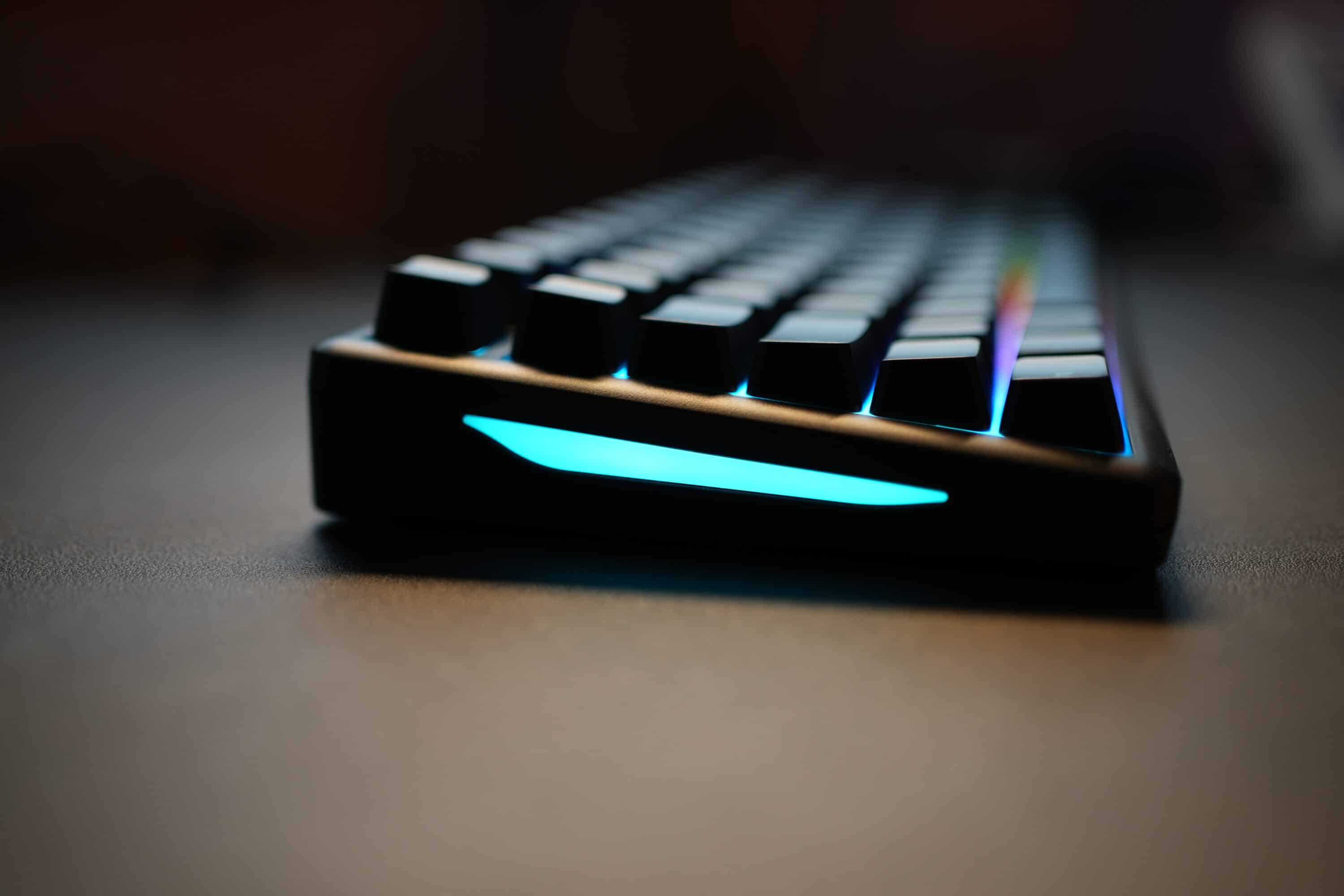 As standard, the keyboard comes with fairly inexpensive keycaps made of ABS plastic, which unfortunately aren’t too grippy, but show off the RGB lighting well. The built-in membrane switches are designed for 20 million clicks and are therefore naturally not as durable as mechanical switches. Nevertheless, you should be able to enjoy them for several years.