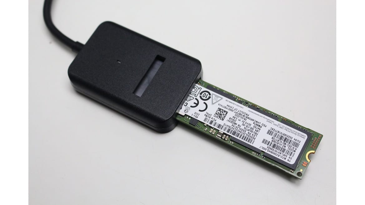Inserting the SSDs was very easy and the M.2 slot ensures a secure hold, so that the adapter could also hang on the back of a PC, for example, without the SSD falling out again. As the housing is also thicker, the SSD never touches the surface and there is no risk of a short circuit.