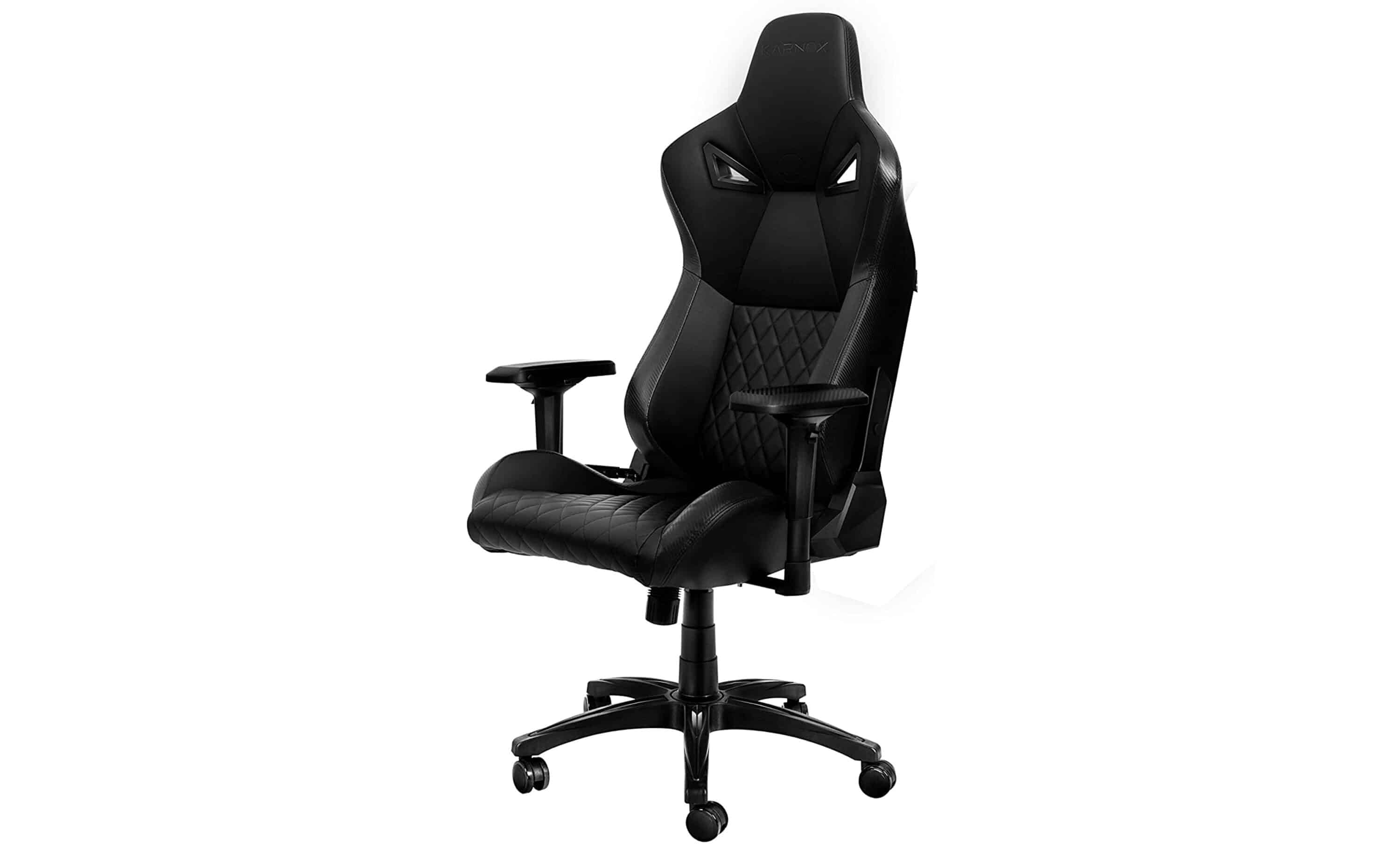The KARNOX LEGEND plays in the price league between 200 and 300 euros and does a lot right here. Especially with our 20% coupon, which brings the price down to about 216 euros, the chair is unbeatable. The black/carbon design is classy and very appealing. Paired with the check pattern, which was incorporated into parts of the backrest and the seat cushion, the chair looks very classy and high-quality. Thanks to the very racing accentuated shape, it becomes a real eye-catcher.