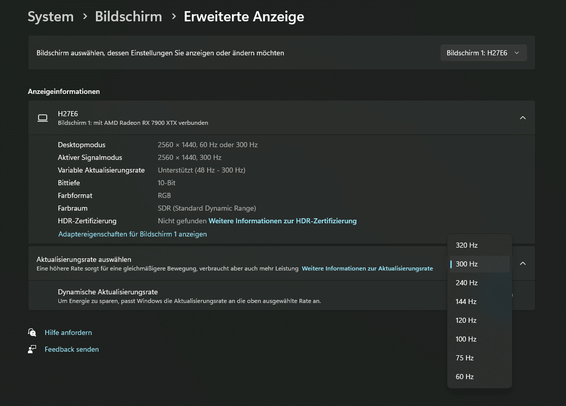 The 300 or 320 Hz in OC are of course definitely noticeable when gaming. Admittedly, the subjective difference between 144 Hz and 300 Hz is less than the former switch between 60 Hz and 144 Hz. Nevertheless, the difference is particularly noticeable in competitive games such as Counter-Strike 2, Valorant or Rocket League. Here in particular, every frame is more noticeable – exactly the target group of the KTC H27E6. The basic requirement is, of course, a powerful gaming PC that can easily produce refresh rates of up to 300 Hz. However, if we switch to games such as Dead Island 2 or Horizon Forbidden West with a strong focus on graphics, it is quite difficult to fully utilize the 300 Hz of the gaming monitor. And yet: even with FPS in the representative range of 120 to 180, the content on the KTC H27E6 is impressive.