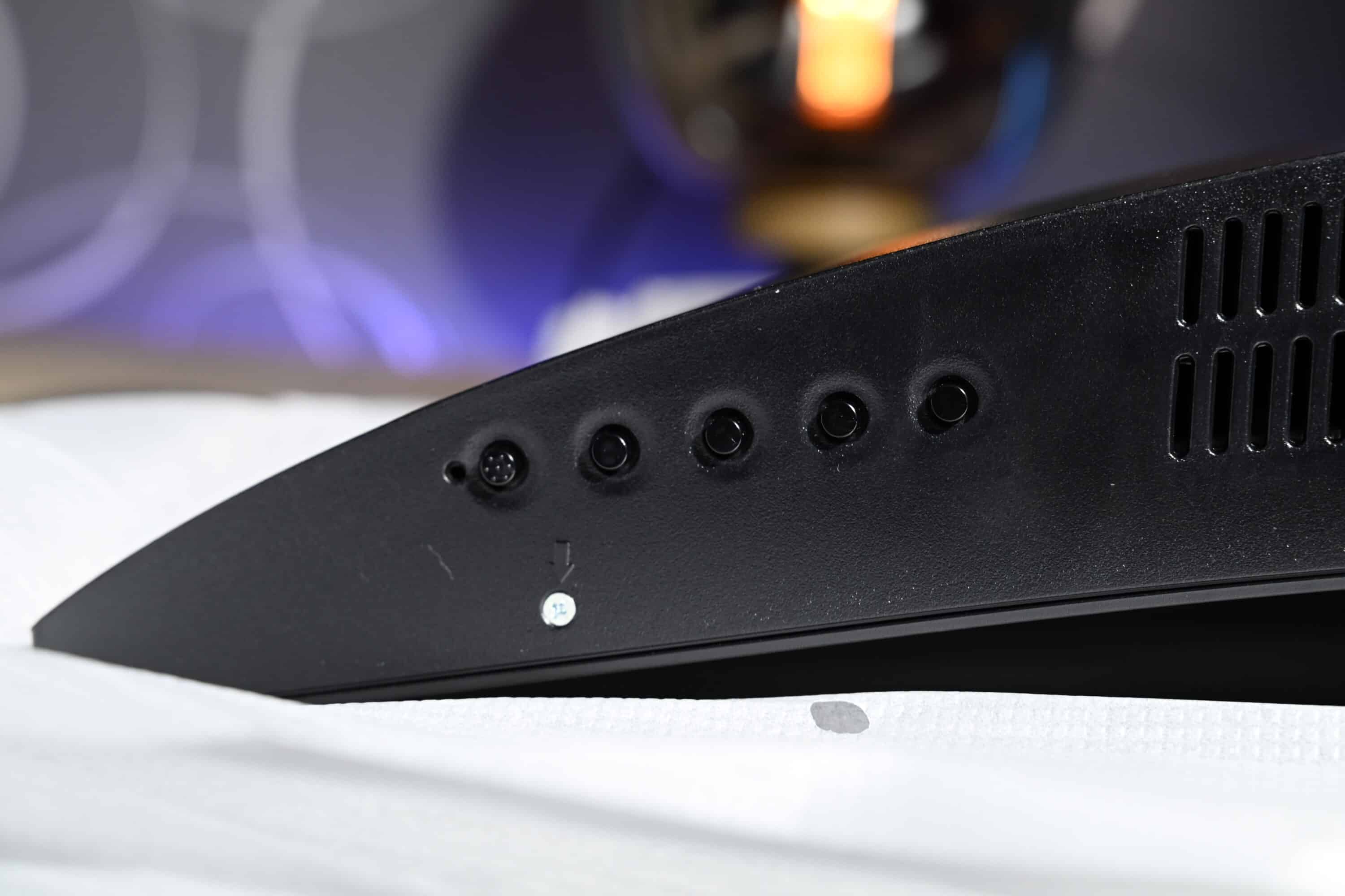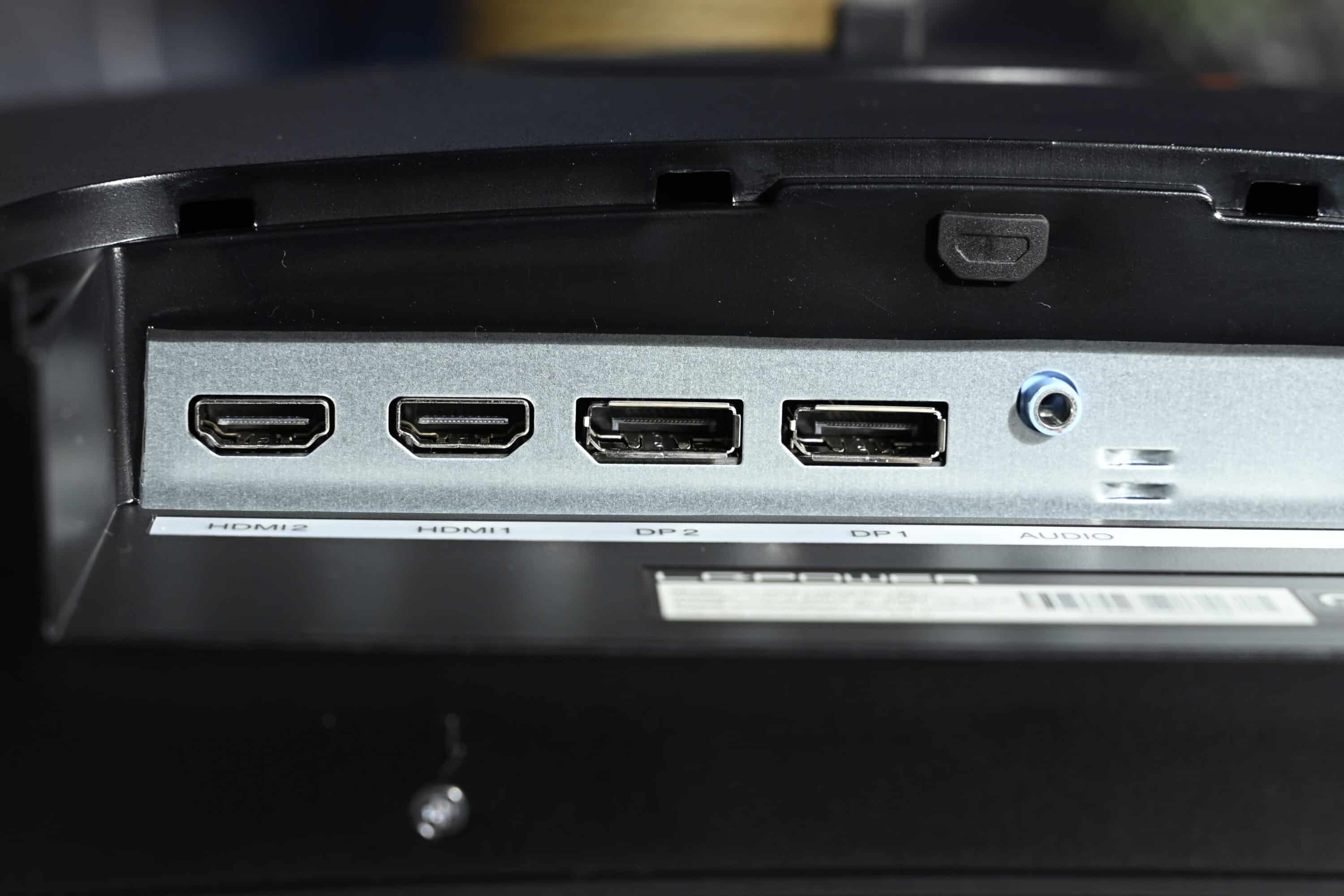 The port selection is fine. Two HDMI 2.0 and two DisplayPort 1.4 are available for image output, and there is also a 3.5 mm jack connection. However, the monitor does not have a USB hub.