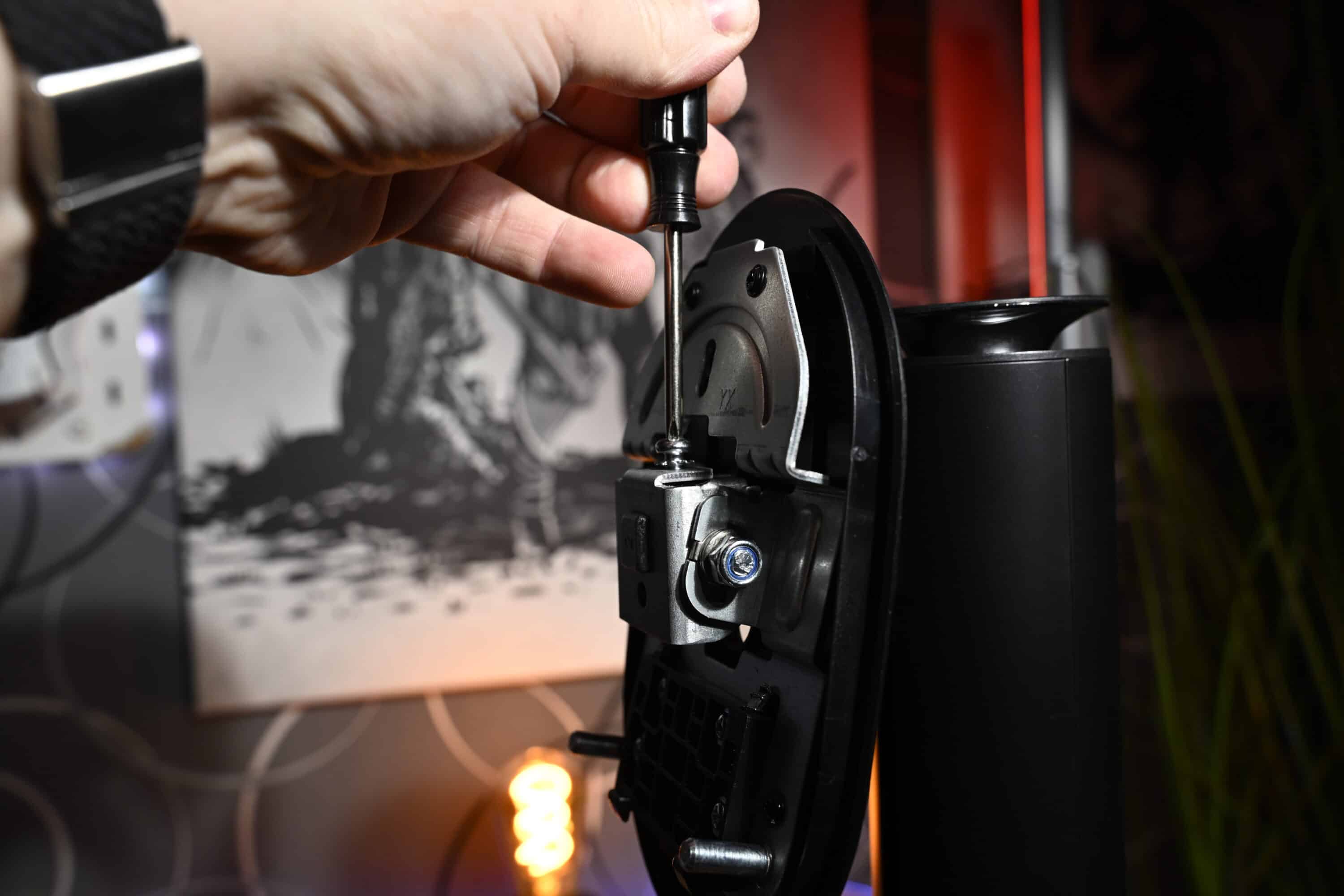 Nevertheless, the workmanship is largely okay. However, I was not able to align the display completely straight. It was always at a slight angle. Maybe 2-3 degrees, but not by much. This is quite annoying, as the ergonomic options do not allow the sides to be tilted. Only a rotation of 15 degrees, a tilt between 5 degrees and 15 degrees and a height adjustment of 100 mm are possible.