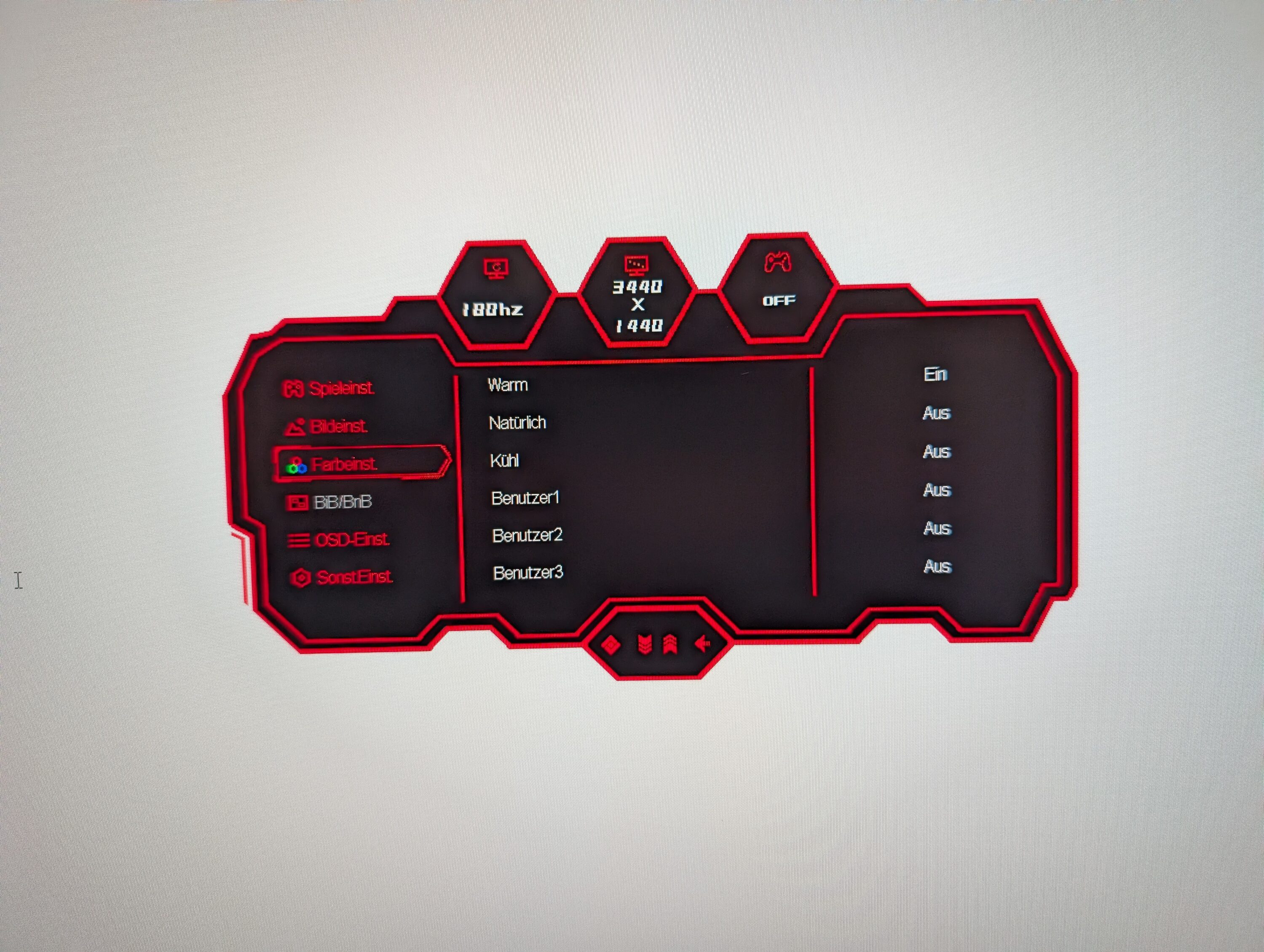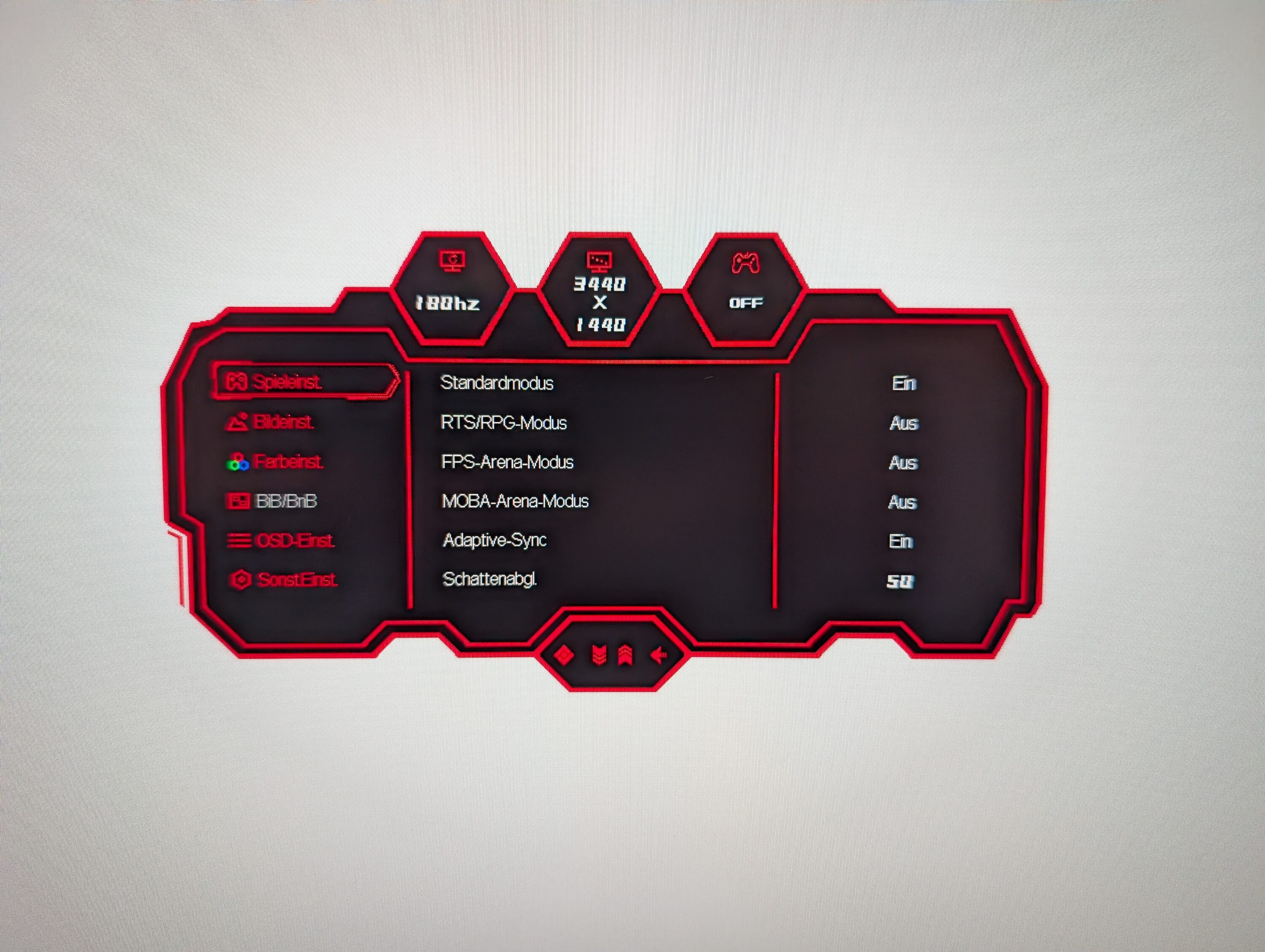 The OSD looks very modern with its black and red tones and is clearly laid out. You can see the resolution and frame rate directly at the top, while six tabs guide you through the menus.