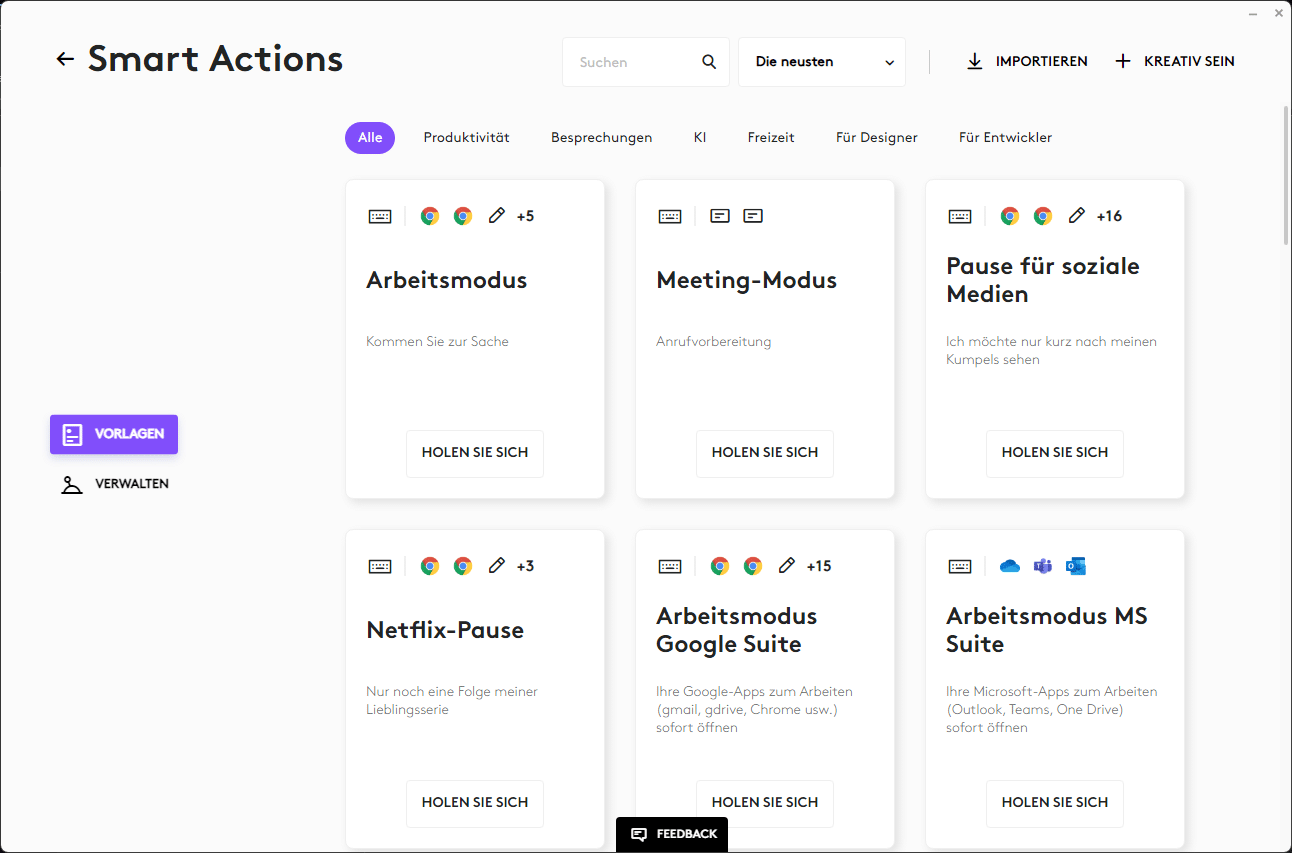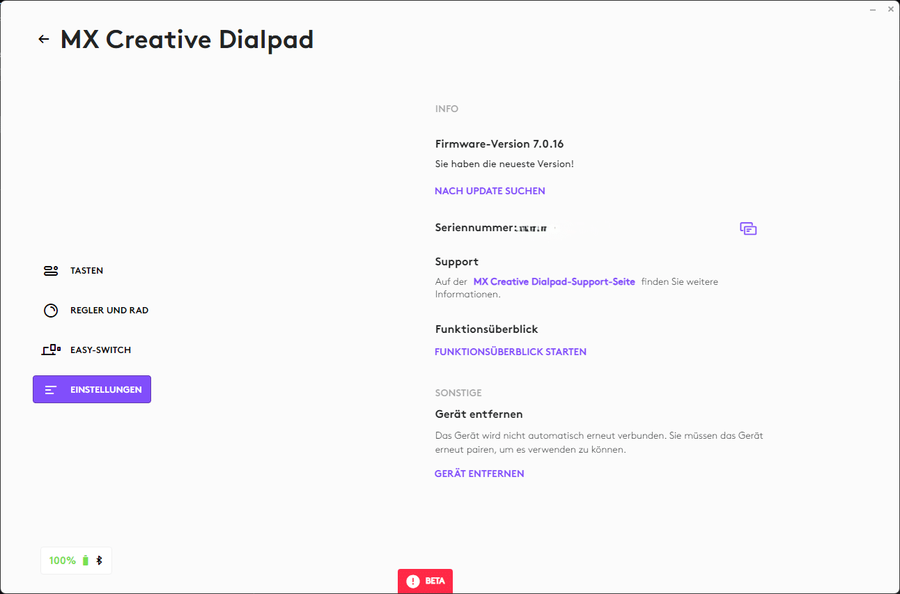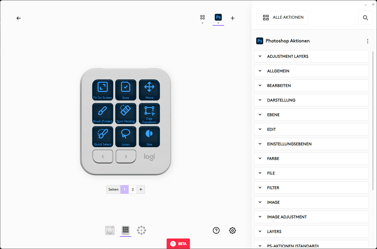 The in-house Logi Options+ application from Logitech is required to actively use the MX Creative Console on the computer. The beta version with the version number 1.84.628903, on which the following experiences are based, was tested. The range of functions may therefore be expanded over time and any bugs may have been fixed in the meantime. Nevertheless, it should be noted that the software is stable and, apart from a few missing translations, Logi Options+ is a fully developed application.