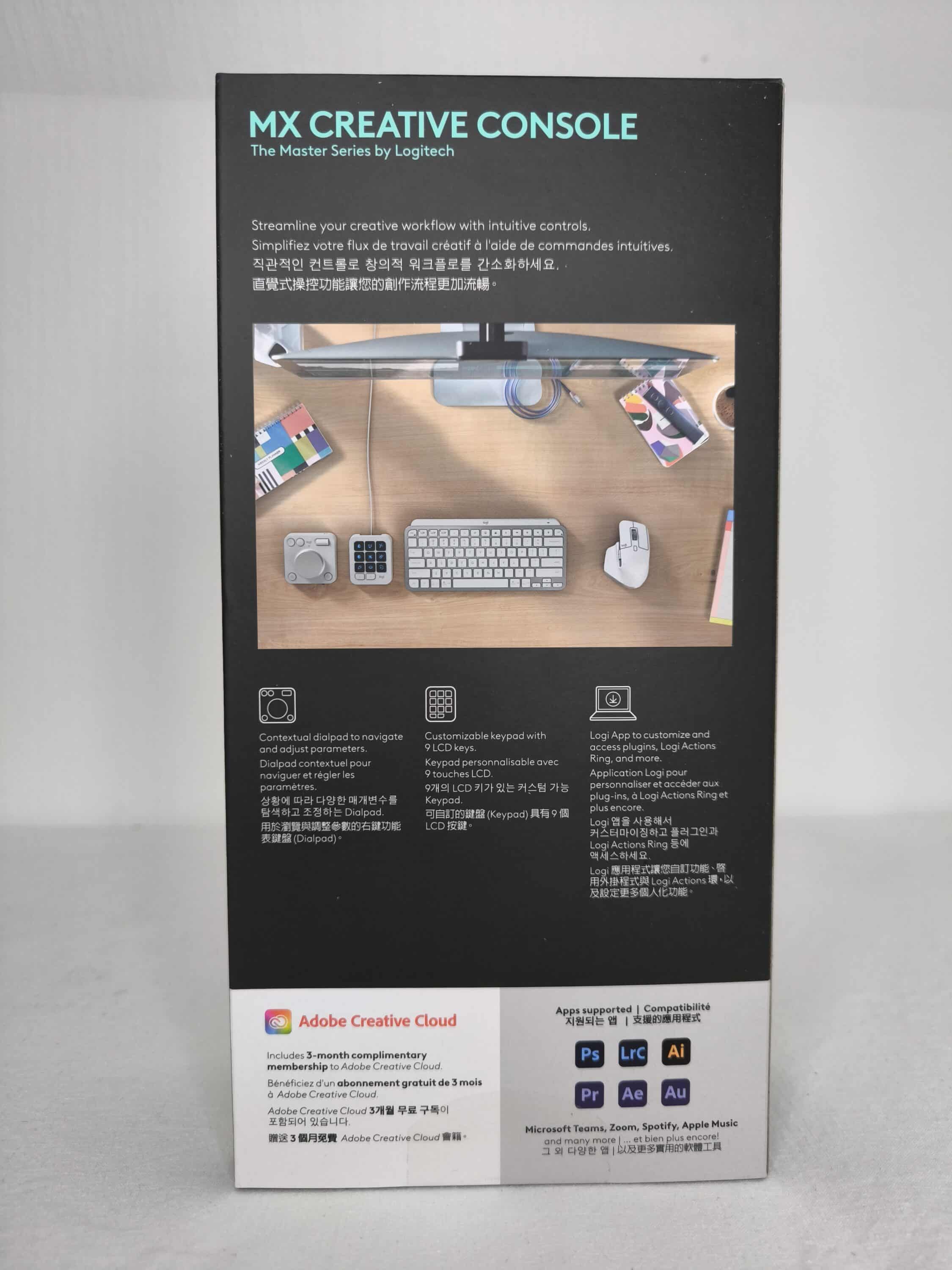 - Control elements: MX Creative dialpad, MX Creative keypad