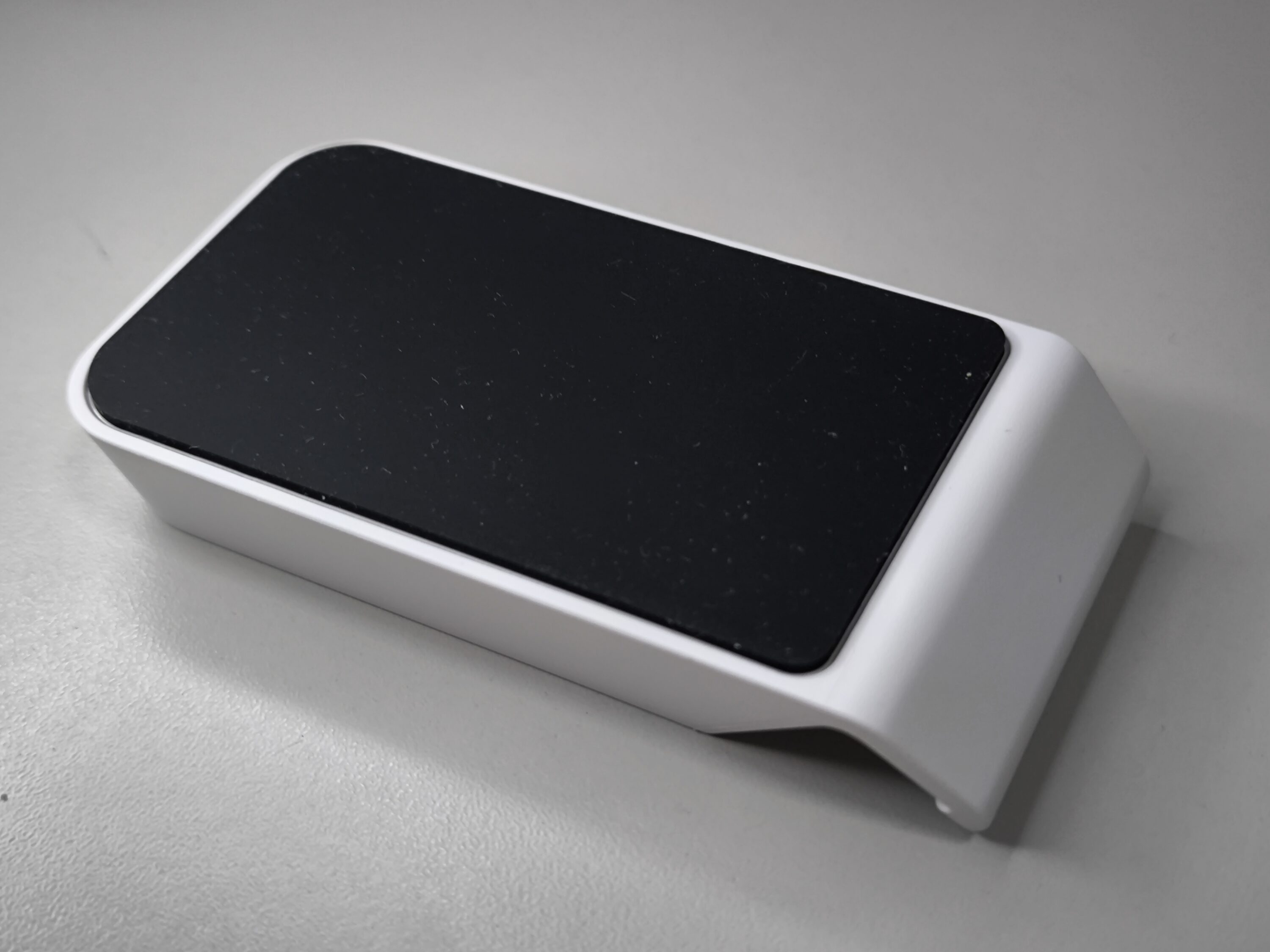 Finally, let’s take a brief look at the other components included with the MX Creative Console. The additional holder for the MX Creative Keypad, like the other elements, is mainly made of plastic. There is a small bulge on the front of the holder into which the keypad is inserted. There is an opening on the back, however, which serves as a cable duct for the USB-C cable. A rubber coating on the underside ensures a secure hold at the workstation. Nice gag from personal experience: If you don’t want to actively use the holder and use the MX Creative Keypad lying down, you can use it as a cell phone stand.