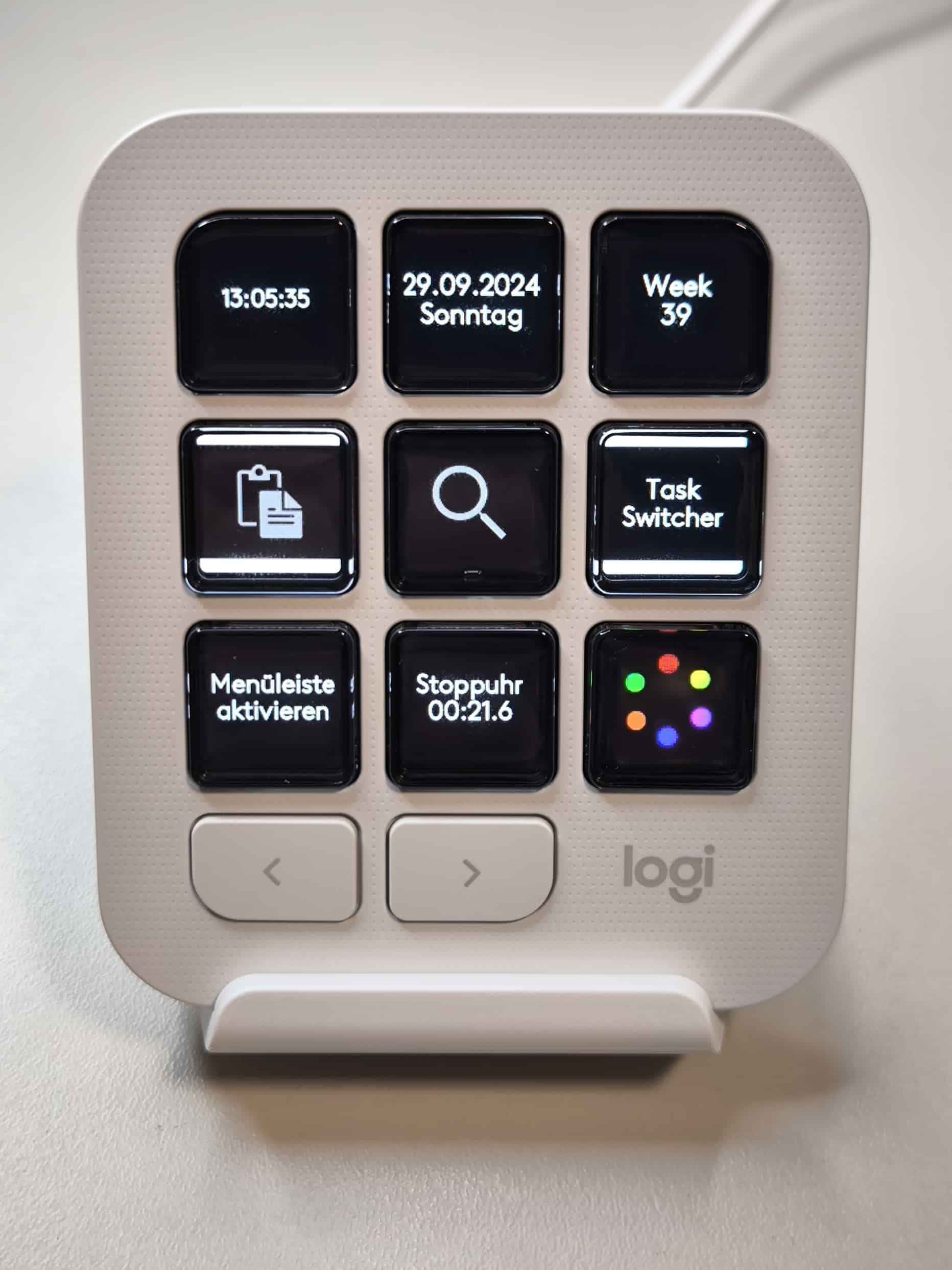 Now back to the MX Creative Console or keypad and what it entails in terms of software. Up to 15 pages can be set in the software, which results in a total of 135 actions with 9 functions per page. This is of course a considerable number and a little dream for lovers of shortcuts! However, it should be mentioned here that you cannot scroll through the pages indefinitely. So you can’t go from page 1 to page 15 and vice versa. The maximum image file size for embedding as a display is 150 KB.