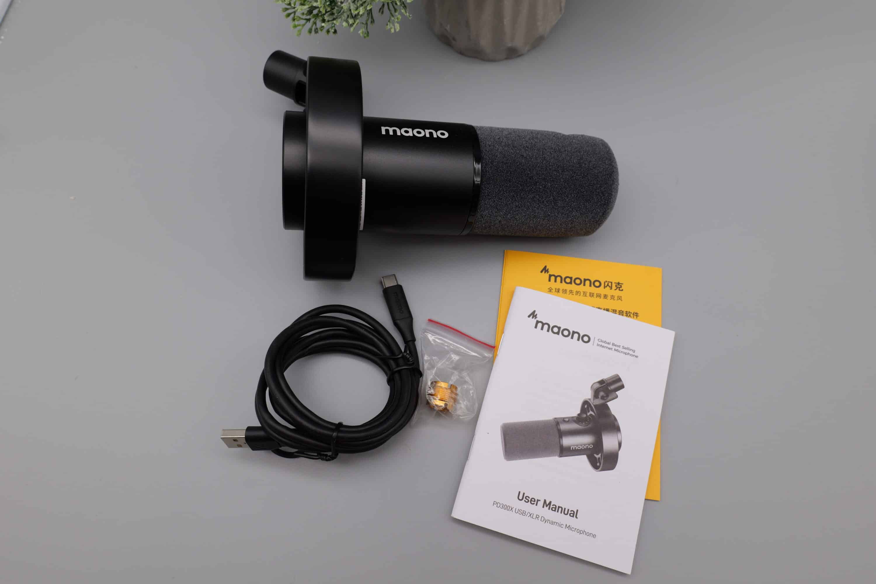 Inexpensive does not mean cheap, as the Maono PD300X makes unmistakably clear from the very first minute. For less than 100 euros, you get a very well-made, high-quality dynamic microphone with an absolutely powerful range of functions.
