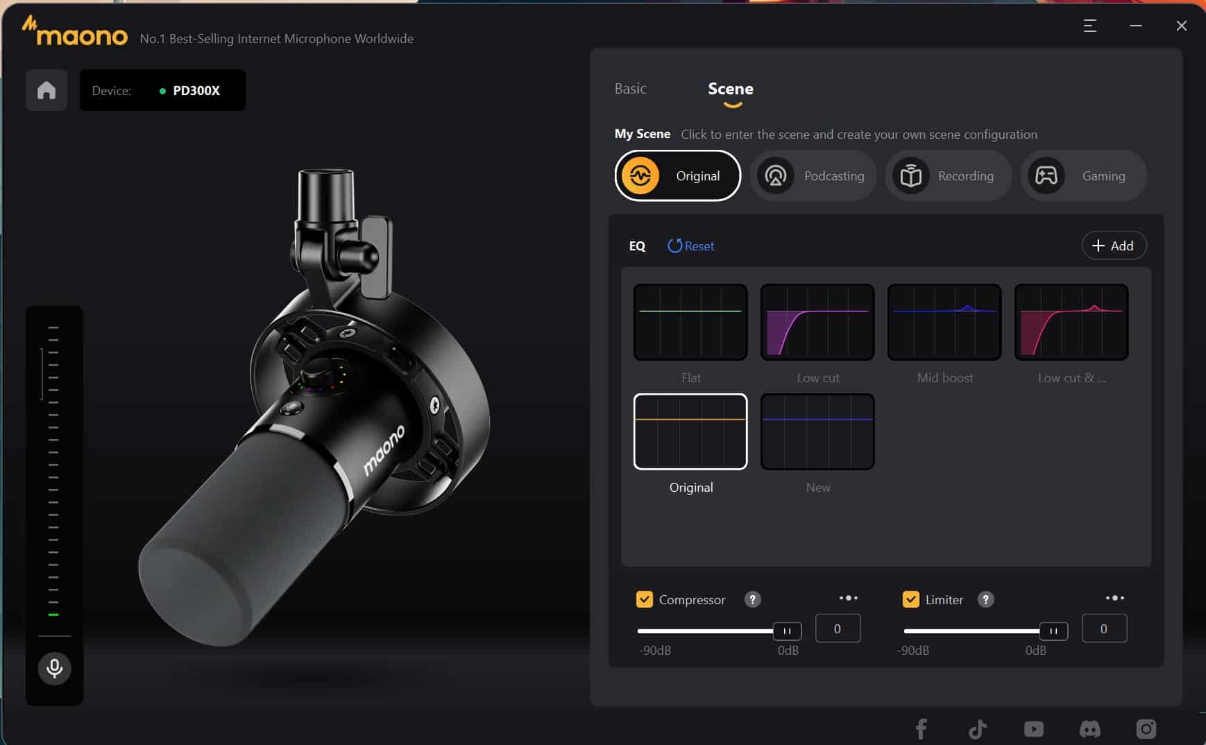 If you connect the microphone via USB, you also have many other options within the Maono Link companion app. Not only can you adjust the gain and other settings or test the sound, but you can also choose between different sound settings.