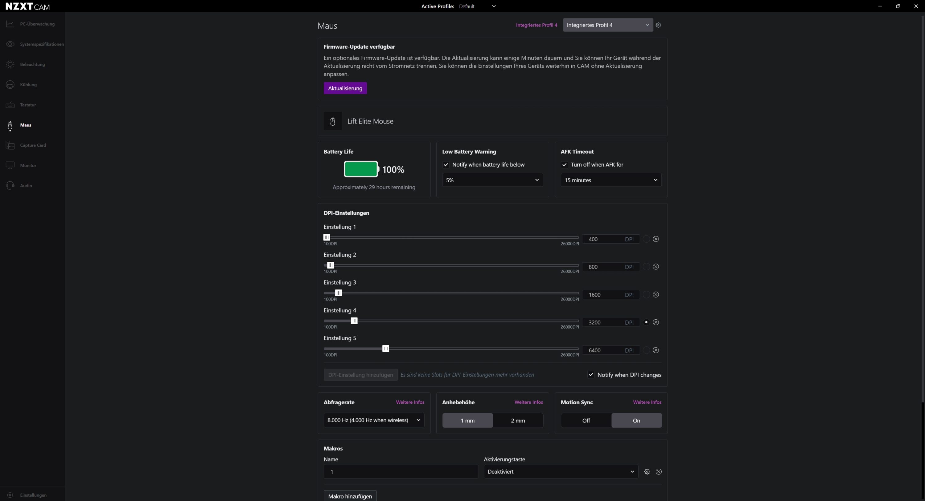 However, this increased speed naturally also has a noticeable effect on the battery life. At a value of 1,000 Hz, which is the default setting, this is a very good 70 hours, but is reduced to around 29 hours at 4,000 Hz.