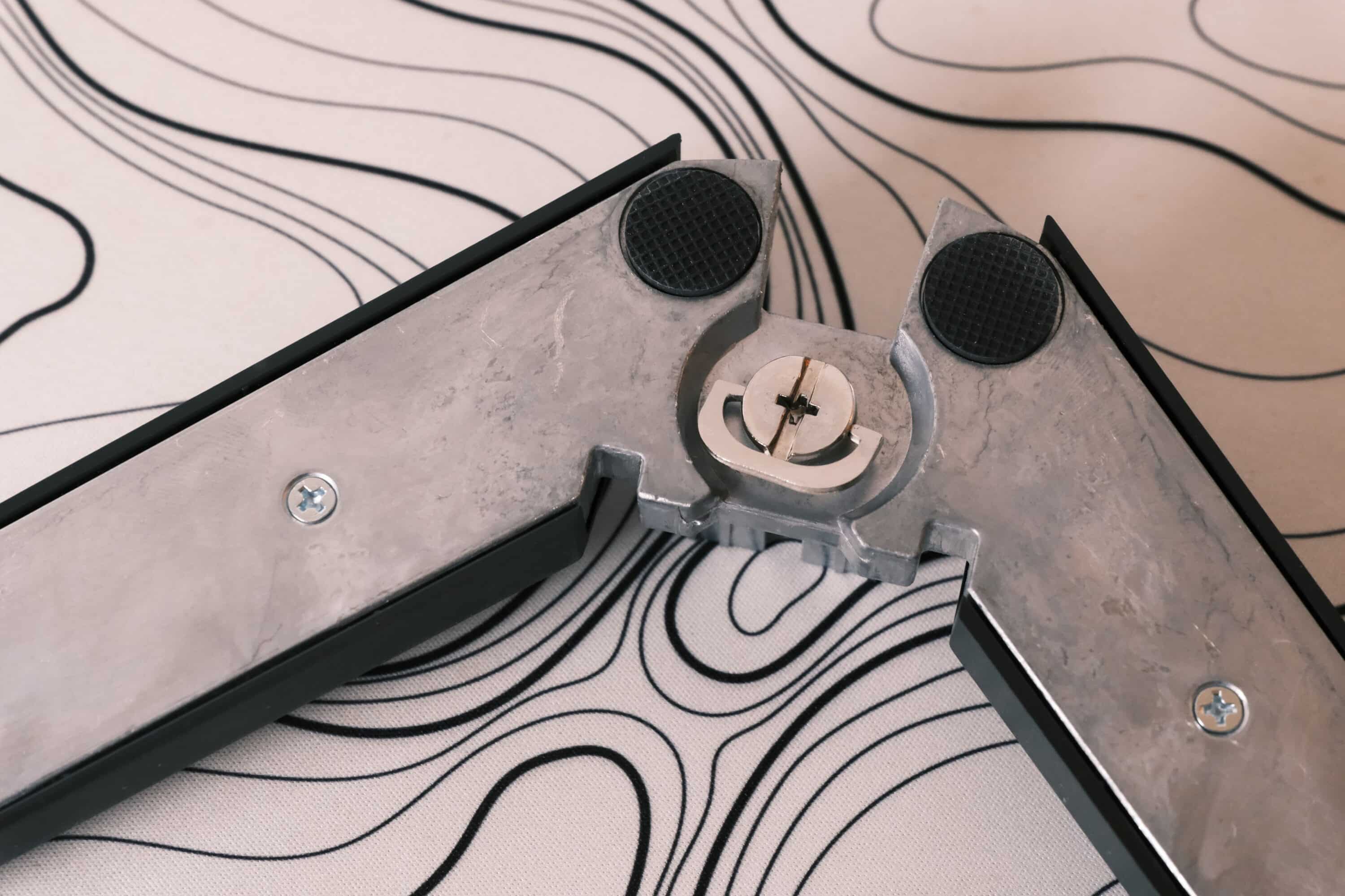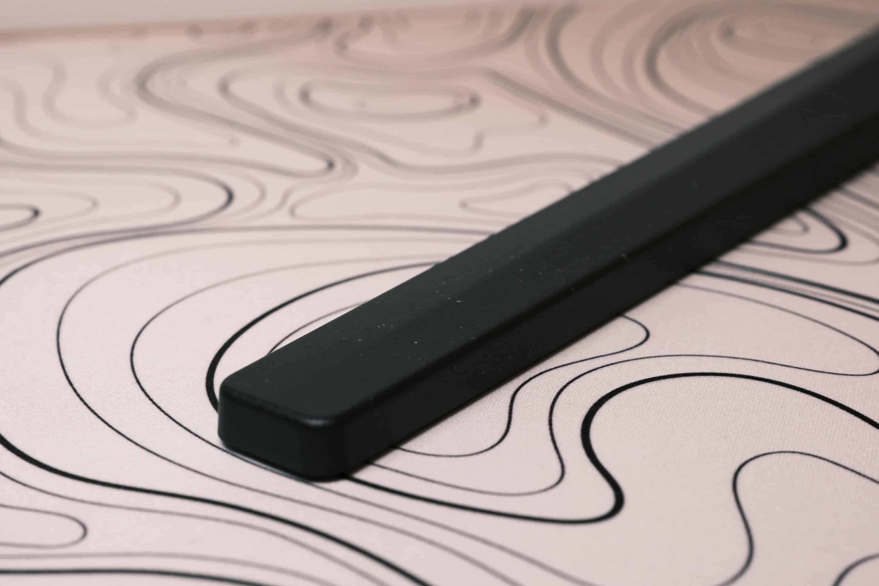 The stand has a rather stylish speckled surface, but looks quite thin and wobbly. In practice, however, there is nothing to complain about: The PHILIPS Evnia 34M2C6500 stands securely on the desk thanks to rubberized nubs, but the monitor does wobble quite a bit when touched – although this is not a cause for concern.