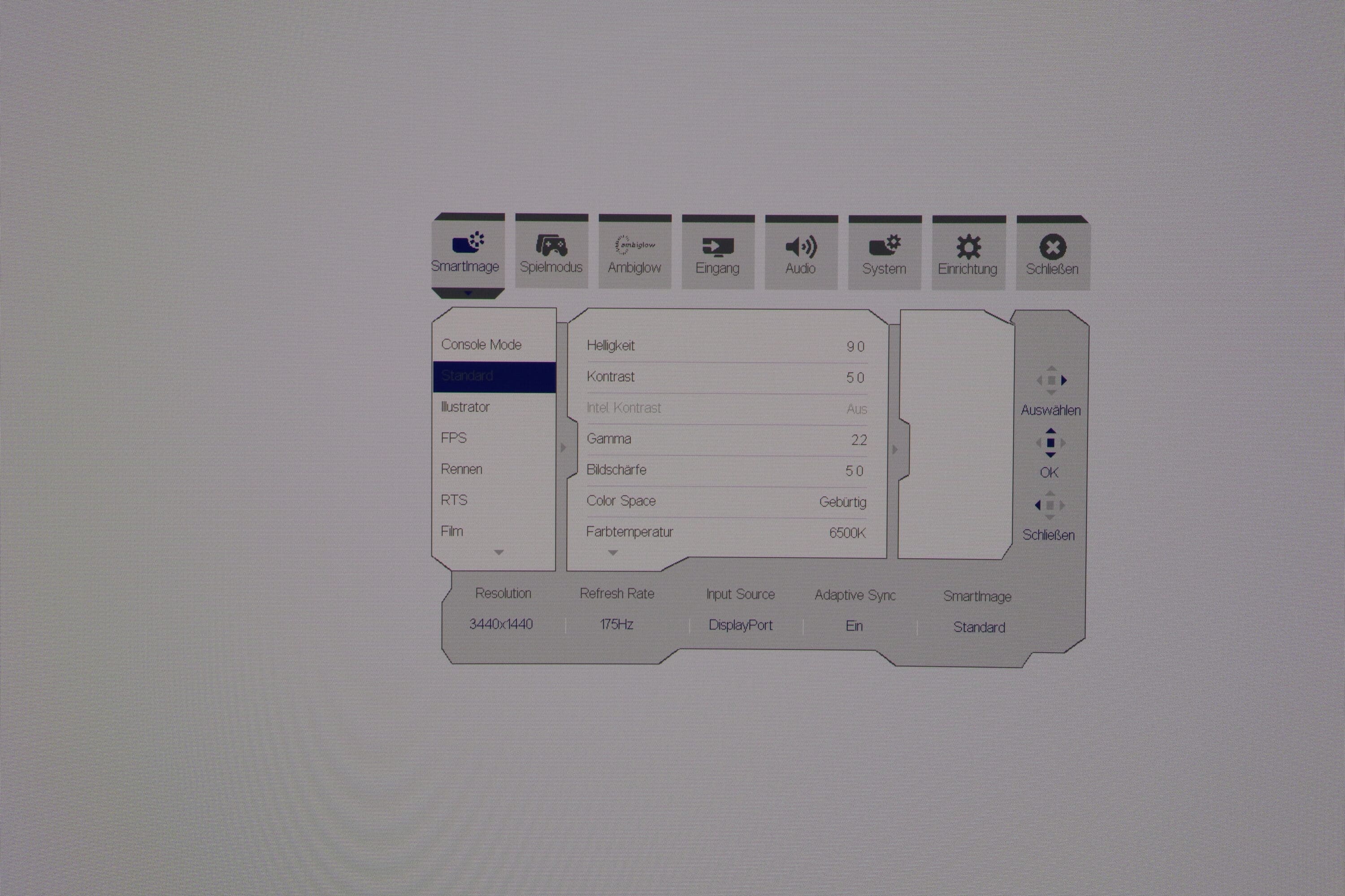 Like all monitors, the PHILIPS Evnia 34M2C6500 also had to prove itself in the lab. To do this, I first reset the monitor to the factory settings. So if you navigate a little through the menus, you can still make a few optimizations in terms of picture quality.