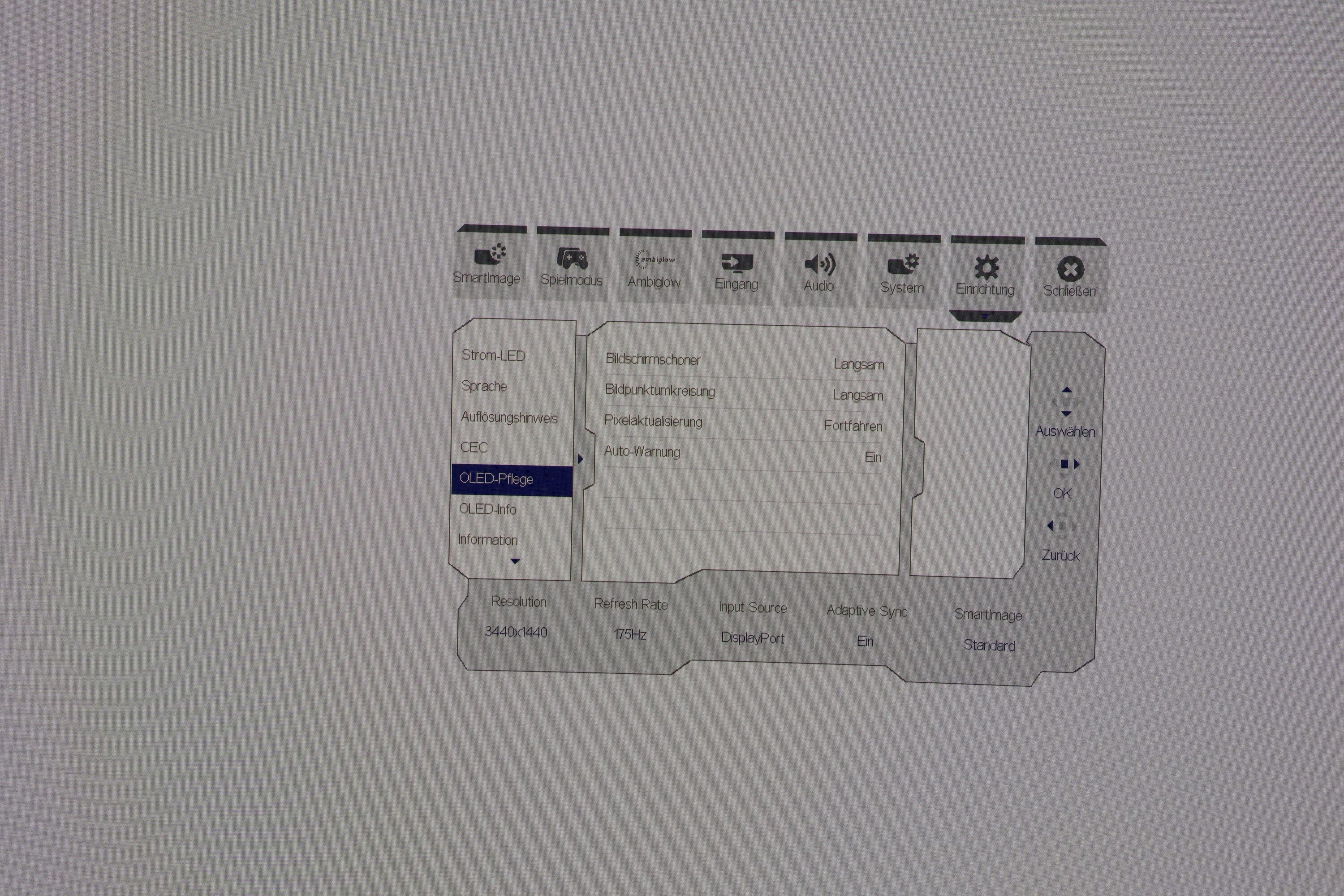 If you take a little time here, you can adapt the monitor perfectly to your own preferences and improve the picture quality even further. The protective mechanisms to prevent burn-in are of course particularly important with an OLED display. Here, the PHILIPS Evnia 34M2C6500 offers various options such as screen saver, pixel offset, pixel refresh or auto maintenance.