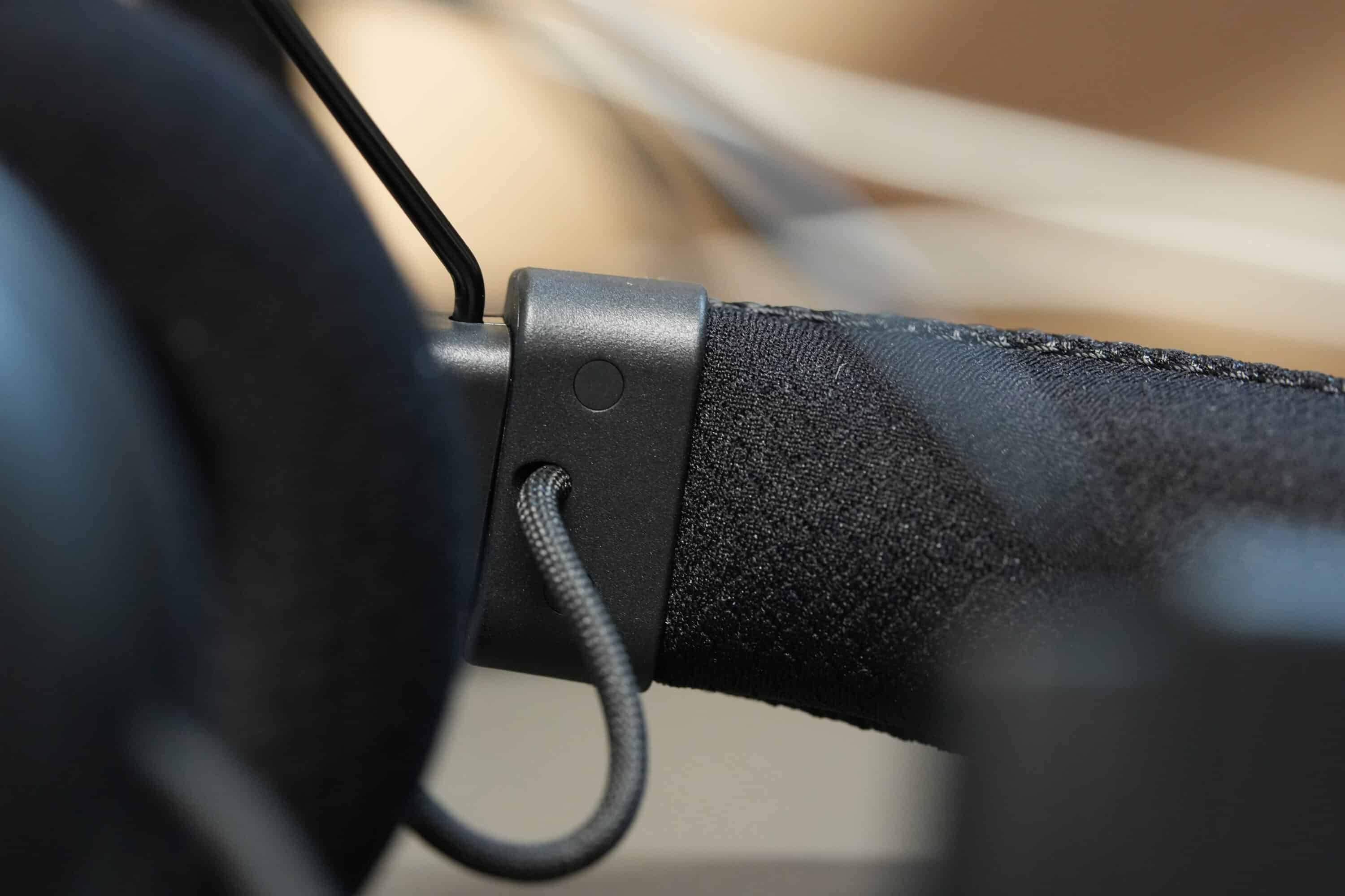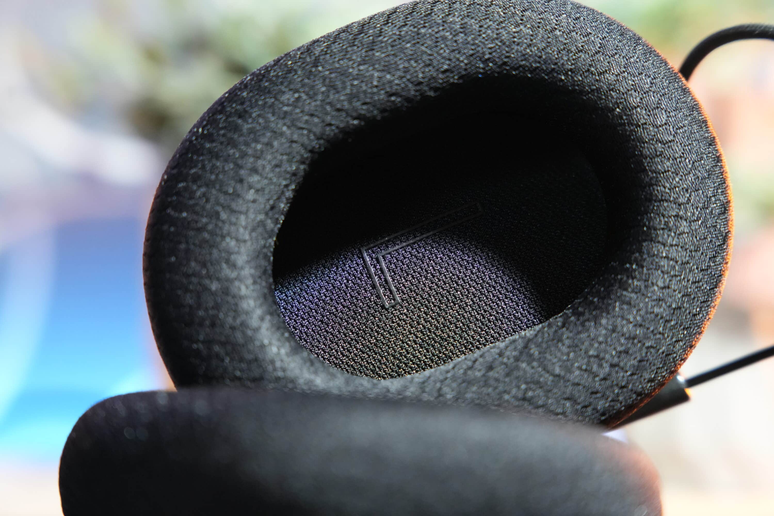 Accordingly, the V3 Pro also features generously sized oval ear cups that merge into the headband via thin metal brackets. The padding is once again very comfortable and generous: The pleasantly soft fabric padding of the ear cups is two cm thick, as is the headband, which ensures excellent wearing comfort even for hours on end.