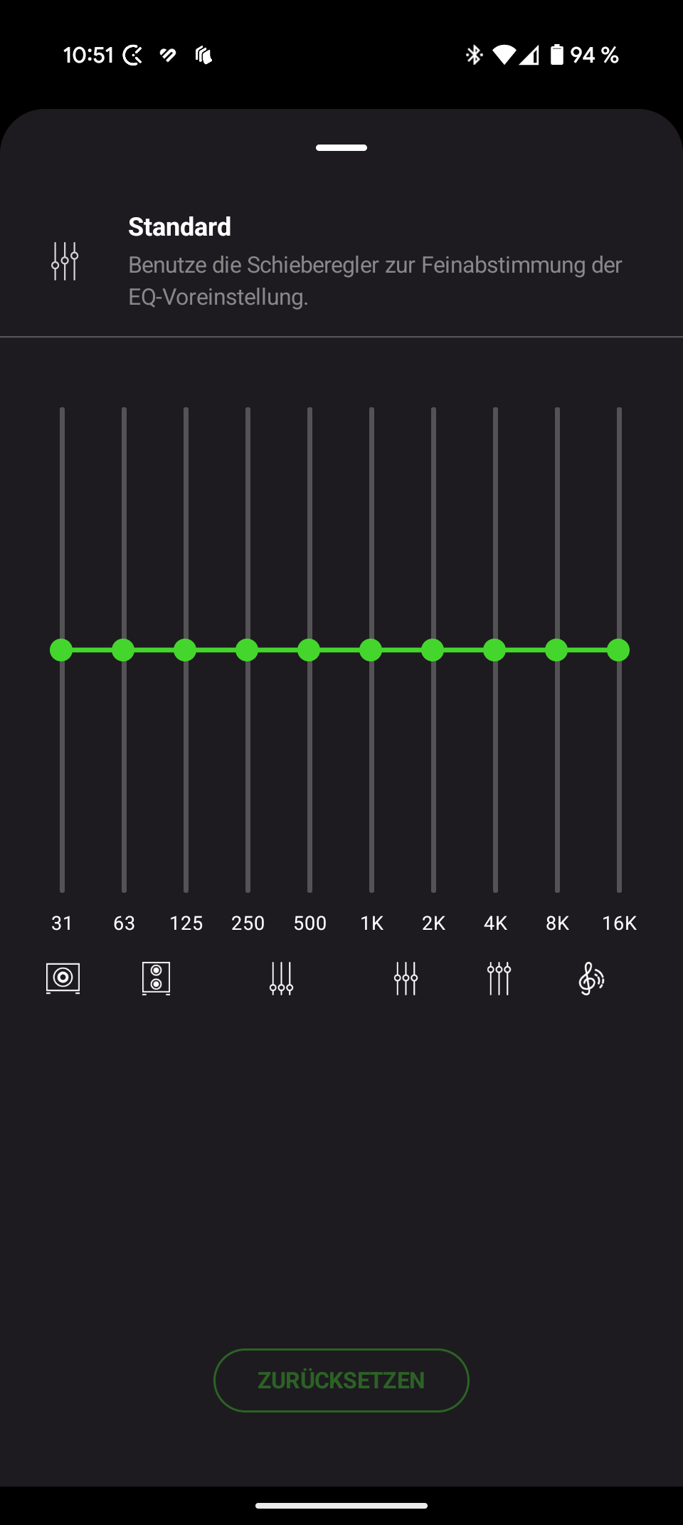 Even in the standard EQ setting, the headset impresses with broad and detailed mids, but shows some noticeable distortion and sharpness in the higher frequencies, which can be easily eliminated by reducing these.