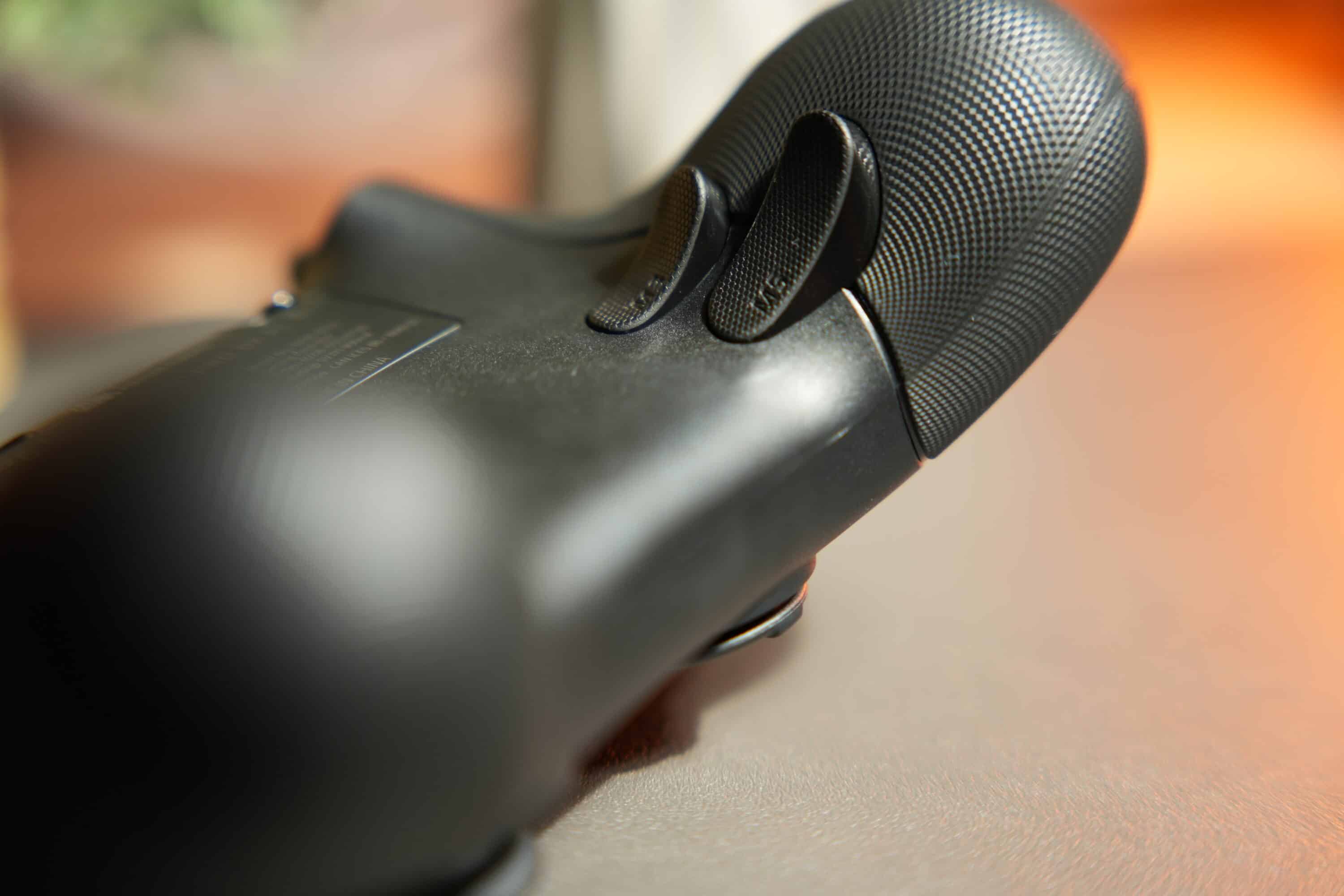 Proven features have been retained: HyperTriggers, four mouse paddles on the back, two Claw-M bumpers and trigger-locks with a firm click feel. Especially in competitive shooters, the fixed triggers provide a mouse-click-like trigger point that is pleasing.