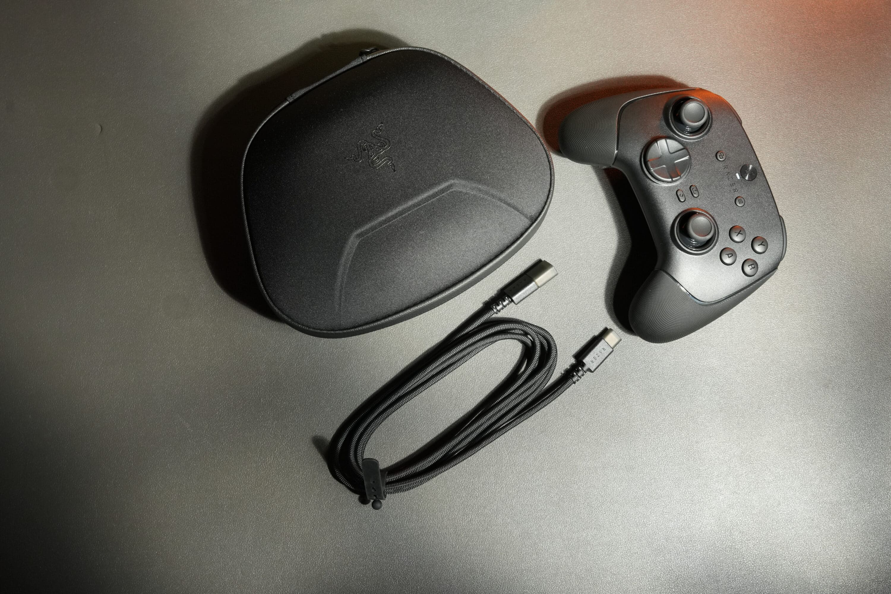 As Razer has reduced the vibration motors, the weight is noticeably lower at 220 grams. Here, the gamepad is almost on a par with wired controllers. The dimensions are 156.7 mm in length, 105.7 mm in width and 65 mm in height.