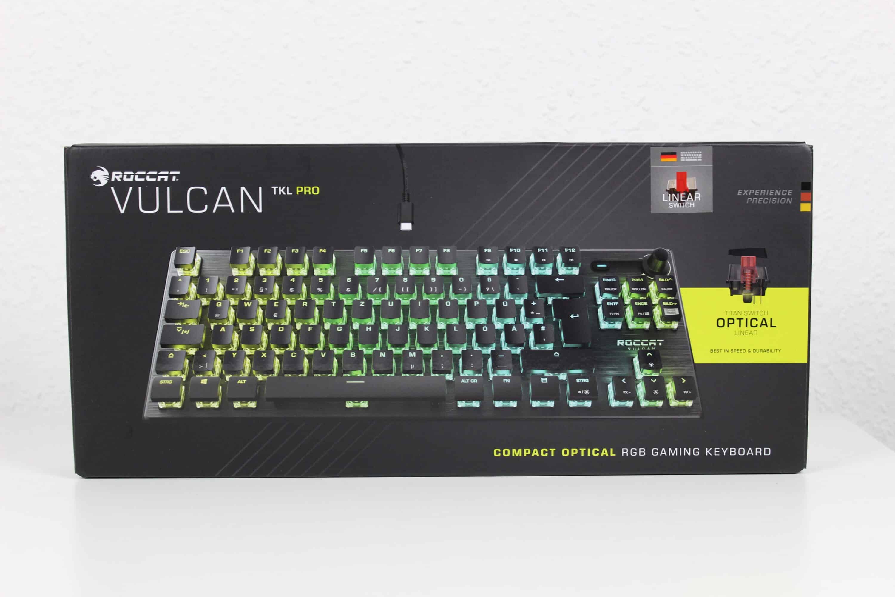 The German manufacturer ROCCAT has ventured into the market of opto-mechanical models with its new keyboard, the Vulcan Pro. The Vulcan Pro is available in “normal” format, as well as in TKL layout. TKL stands for “Ten-Key-Less” and means that this version comes without the numeric keypad. Whether the new switches are convincing and how the keyboard performs in general in the test, you will find out in this report.