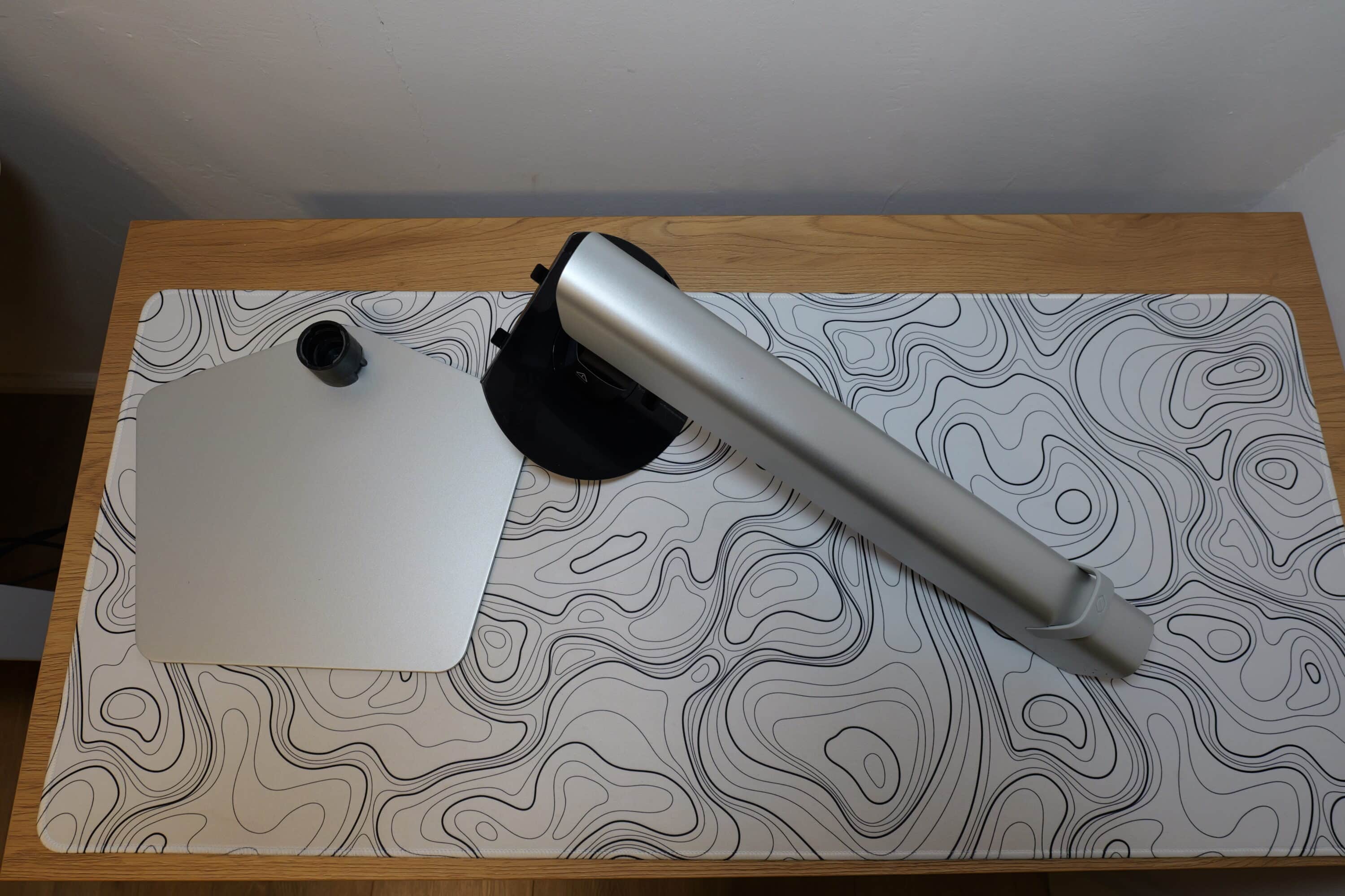 The stand is pleasantly flat and has a pentagonal design. It not only offers excellent stability, but also enough space to place a mouse or gamepad on it, for example.