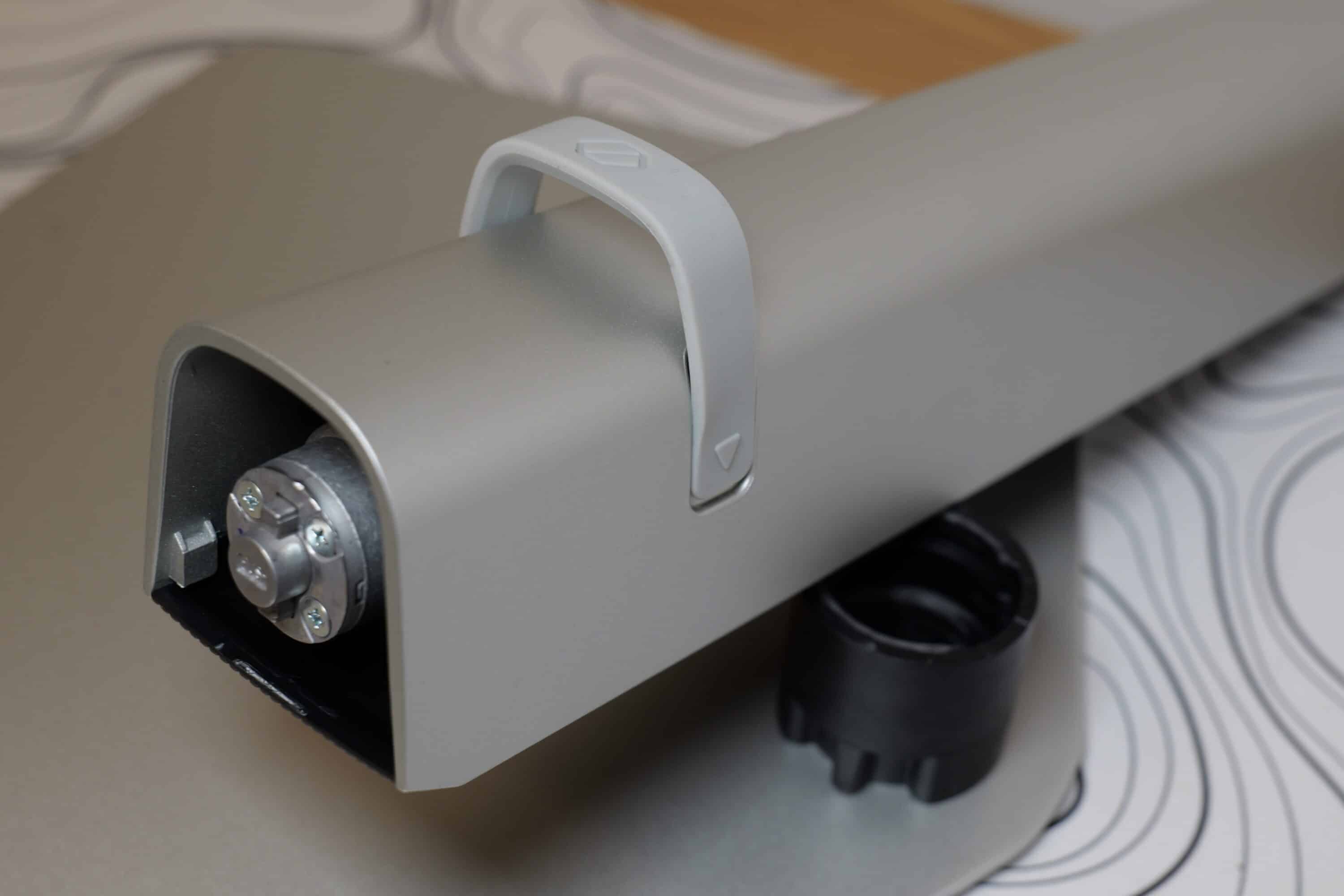 We particularly like the trick Samsung has come up with for the connection between the mount and the stand: The mounting works without tools – but with the special feature that the stand is simply screwed into the bracket and inserted. Removal is quick and easy by simply pressing the corresponding button.