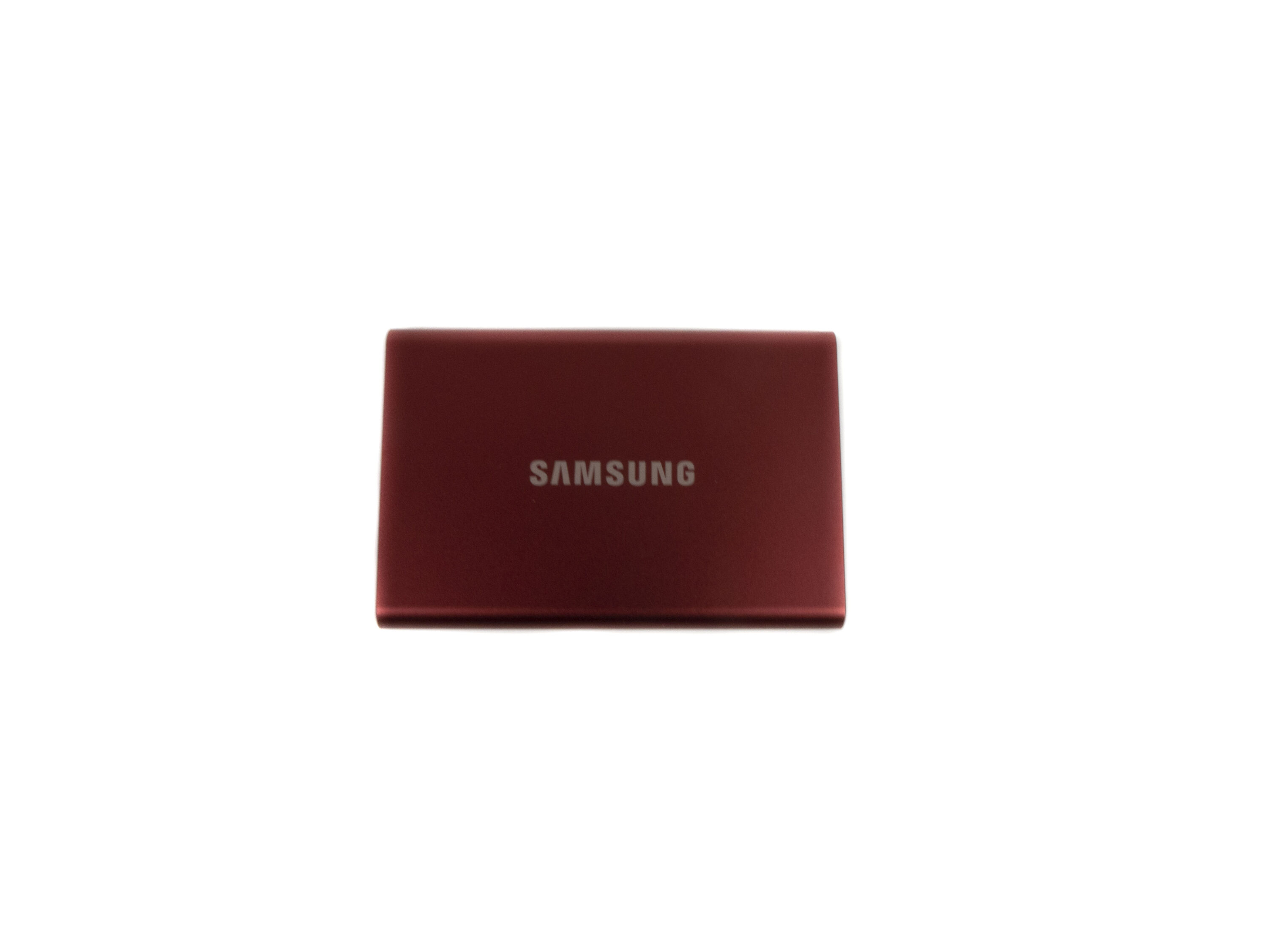 Like its predecessors and the T7 Touch, Samsung has opted for a very simple design. There are no technical design features, just two lettering. On the top side, the lettering “SAMSUNG” is centered, while on the bottom side the product name is placed somewhat more discreetly in the right-hand corner. The USB-C port is also centered on the front, so that the T7 again shows symmetrical features. As already mentioned, you have the option of choosing the right color from Indigo Blue, Titan Grey and Metallic Red. This way, the SSD can at least be adapted to your own taste.