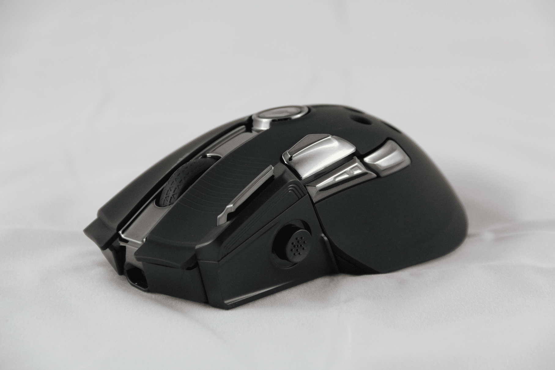 In use, the keys feel precise. The middle mouse button is more sluggish than the others and the round four-way button, which is moved rather than pressed, feels a bit spongy at first, but you quickly get used to it. With the exception of the DPI button, all the buttons are positioned so that you can reach them easily. Especially the three thumb buttons on the side are handy for quick access without the risk of accidentally clicking.