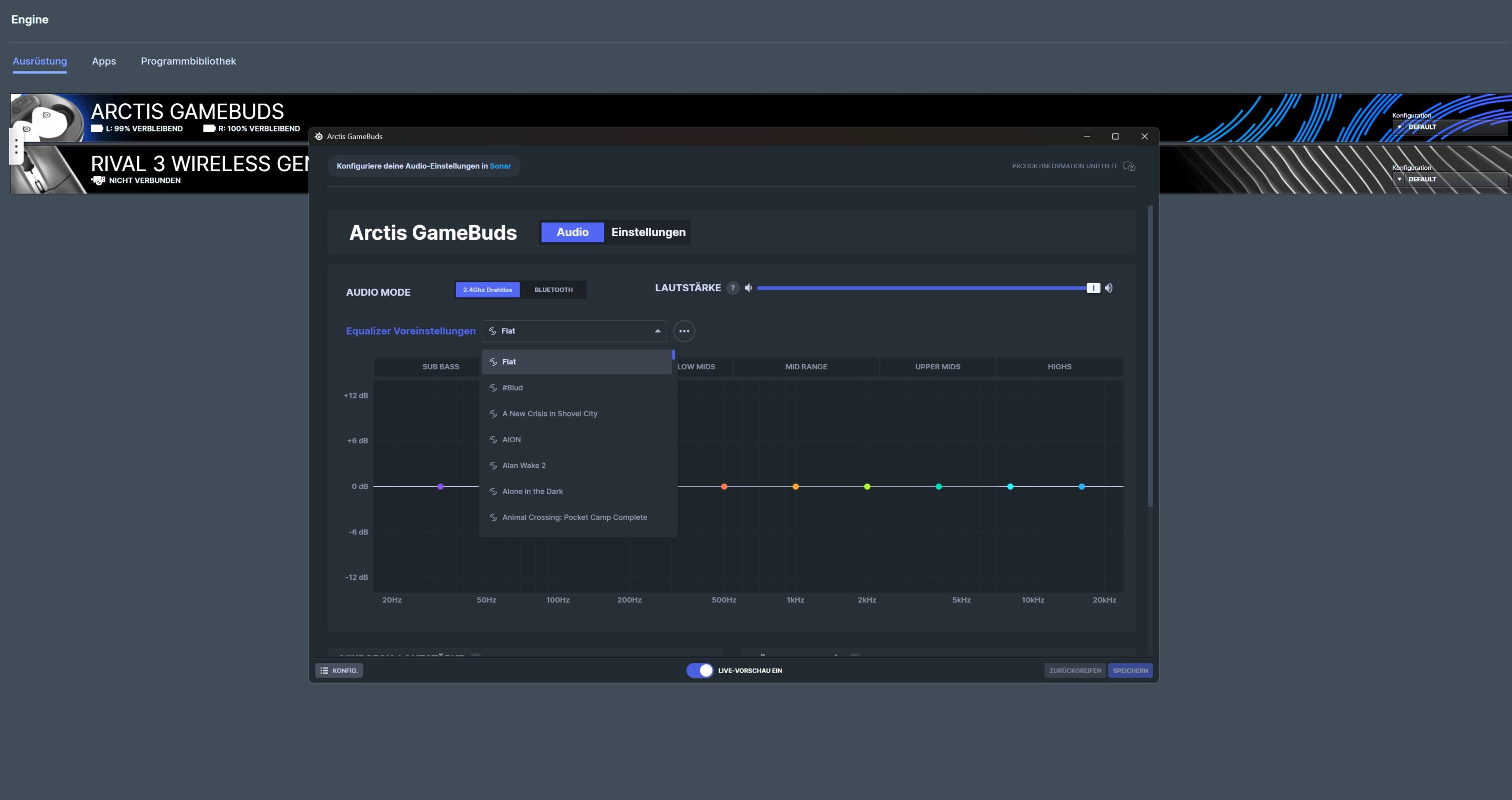Unfortunately, it is not possible to create your own sound profiles. Whereby: Yes, but only via a detour to the PC. The classic SteelSeries Engine/GG combination is used here, which is familiar from other devices from the manufacturer.
