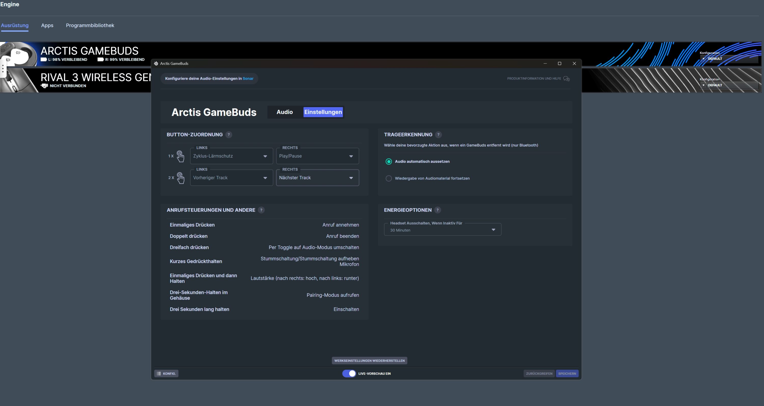 Keyword app: The manufacturer really offers the full program for the SteelSeries Arctis GameBuds. On the one hand, a mobile app called “Arctis” is available. This not only provides information about the battery status, but also offers many practical features.