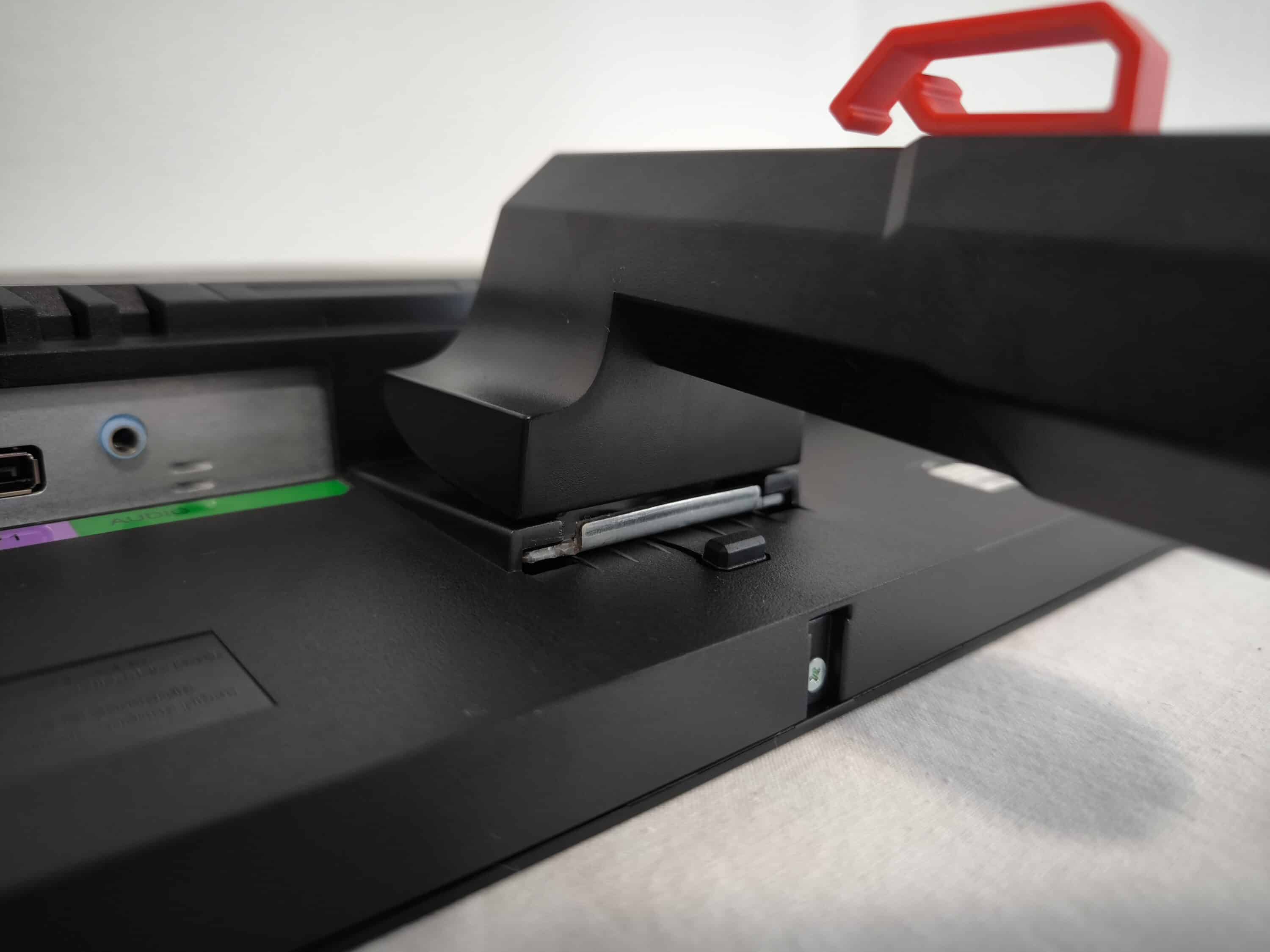 Mounting the TITAN ARMY P27GR is done in no time at all, as only a few steps are required. First, the stand is clipped onto the back of the monitor. The base plate can then be hooked into the stand. From this point on, the TITAN ARMY P27GR is ready for use, except for the cabling.