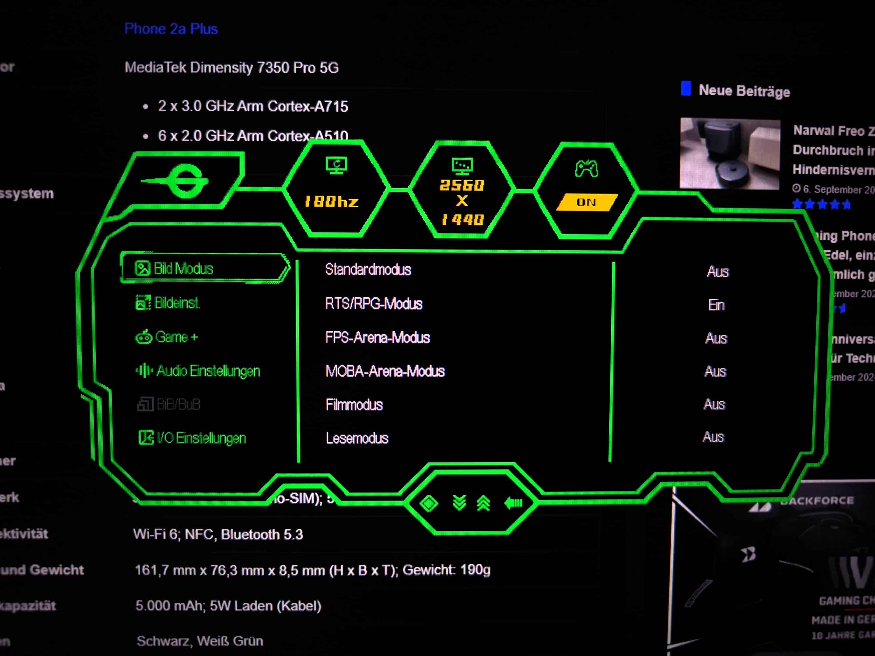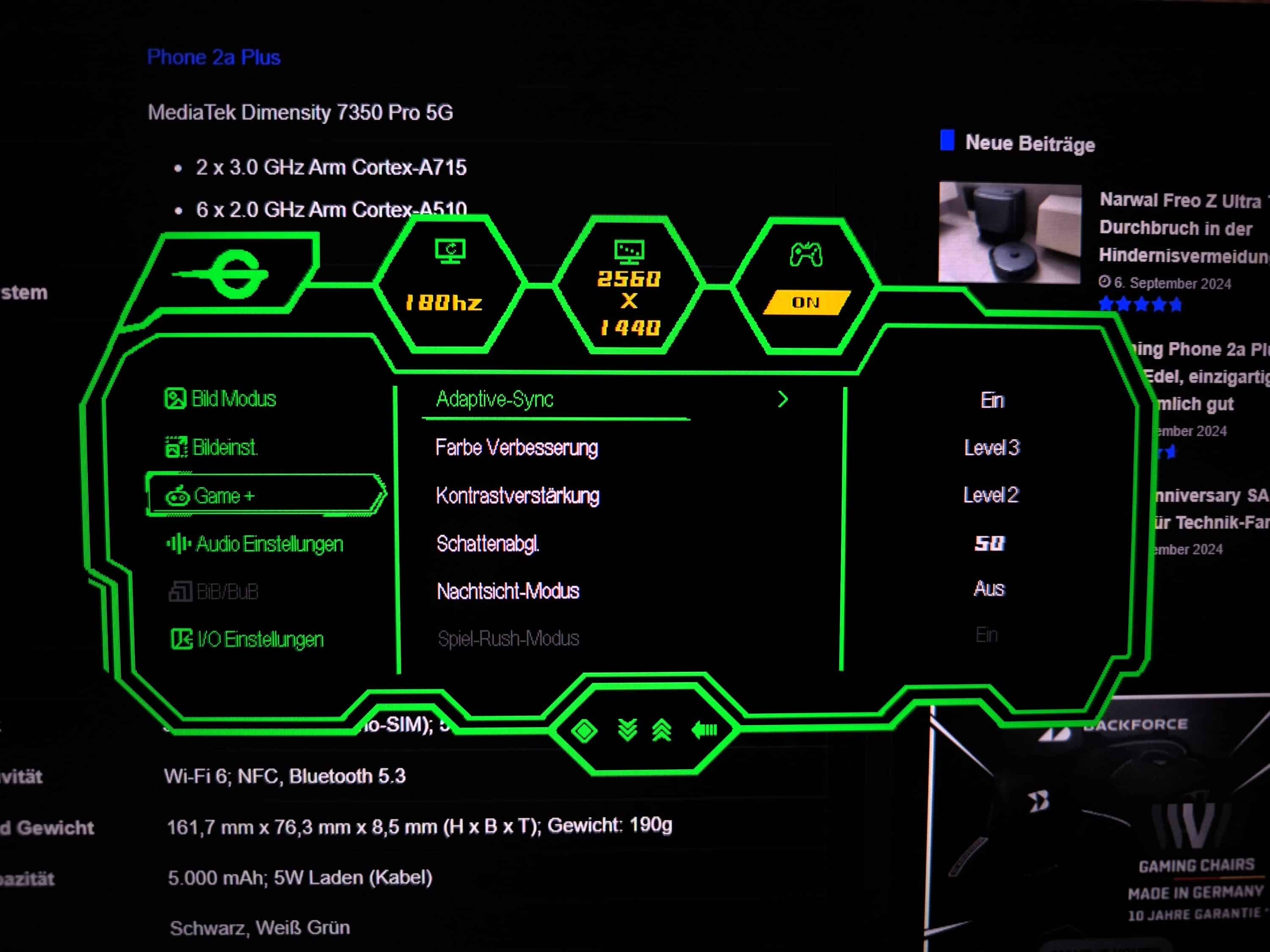 Of course, the monitor can play to its strengths when gaming and delivers impressive images here. Thanks to Adaptive Sync, we didn’t notice any tearing. In terms of gaming features, the post-processing of dark scenes is really helpful. The monitor analyzes dark areas in real time and brightens them up without the picture quality suffering noticeably. This was a clear advantage in the Dying Light 2 test! The integrated image sharpening and color enhancement are also nice, even if they should not be used to their full extent. Of the 10 gradations, however, a setting of 3 is fine and makes for a somewhat crisper image.